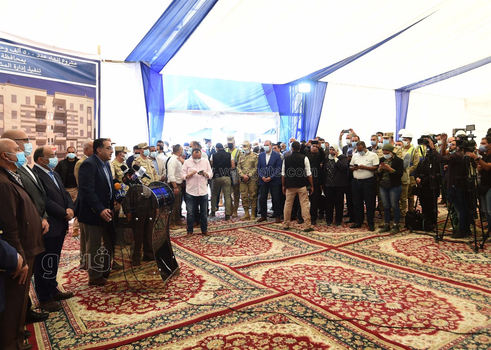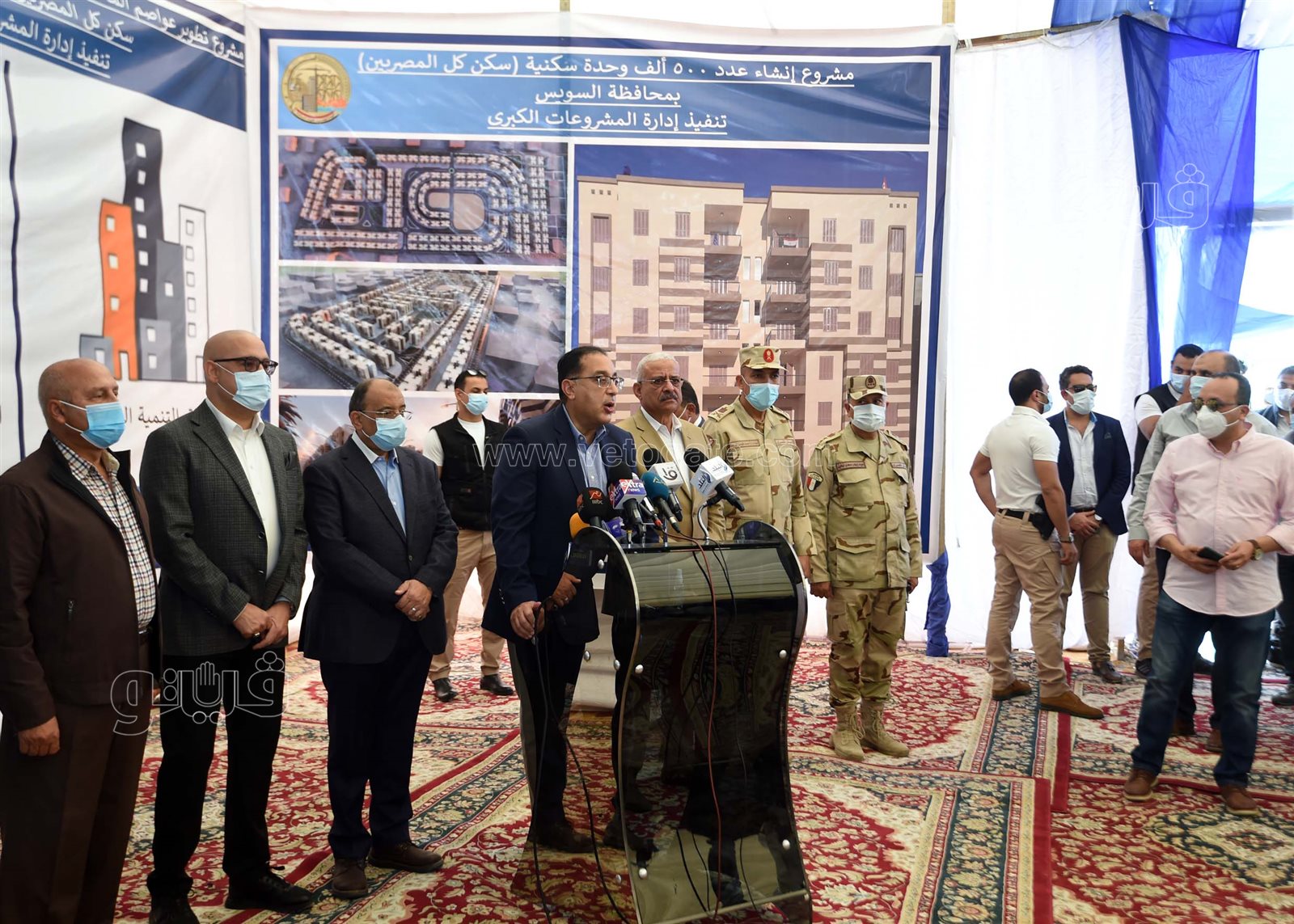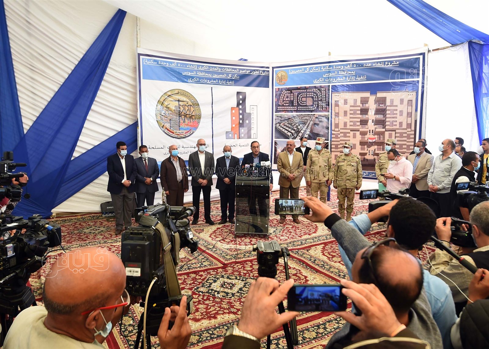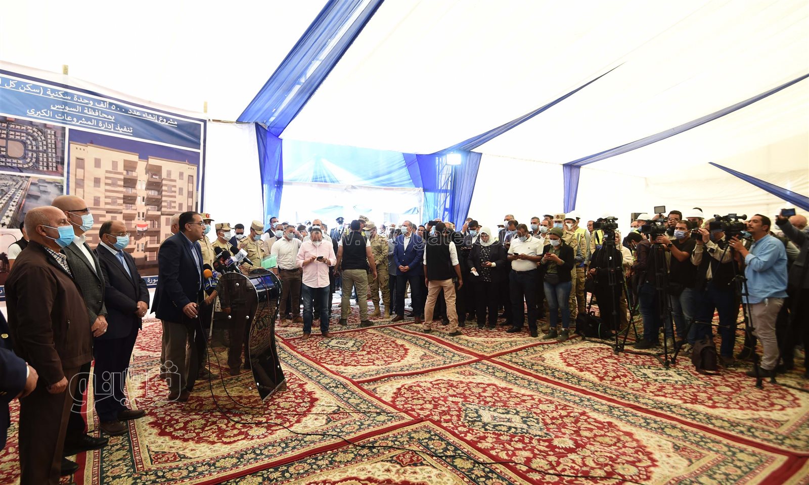 وتابع رئيس الوزراء: اتصالا بذلك نحن اليوم نزور أحد المواقع للمشروع الكبير الذي أطلقه الرئيس عبدالفتاح السيسي، رئيس الجمهورية، الخاص بـ "سكن لكل المصريين" الذي يستهدف نصف مليون وحدة سكنية جديدة في قلب المدن القائمة، ومن المخطط إقامة 25 ألف وحدة سكنية في محافظة السويس كمرحلة أولى، وتوجد مساحات من الأراضي التي ستمكننا من إطلاق مرحلة جديدة ثانية أخرى، وفي إطار المرحلة الأولى بلغ حجم ما تم إنشاؤه بالفعل أكثر من نصف المستهدف، بمعدل أكثر من 13 ألف وحدة تم إنشاؤها، وبدأت مرحلة التشطيبات على أساس توفير سكن ملائم، وسيتم تخصيص جزء منها كبديل للمناطق غير المخططة الموجودة داخل مدينة السويس.