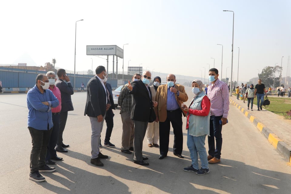 رافق المحافظ خلال الجولة اللواء علاء بدران السكرتير العام والمهندسة نجوي السعيد مدير مديرية الطرق وتيسير عبد الفتاح رئيس حي الهرم وشفيق جلال رئيس هيئة النظافة