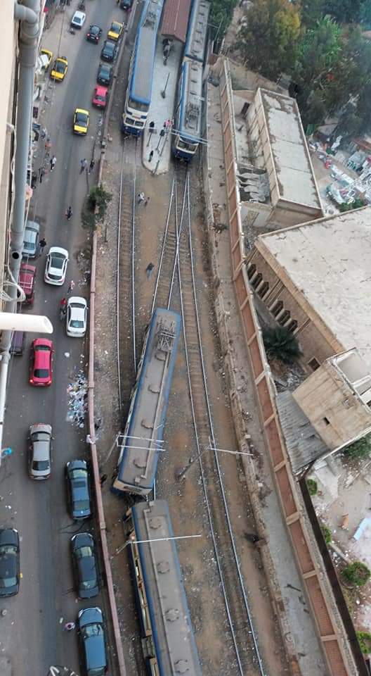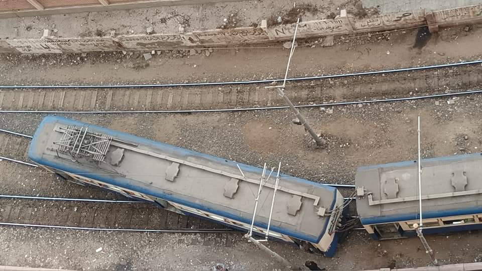 خروج ترام الإسكندرية عن القضبان |صور
