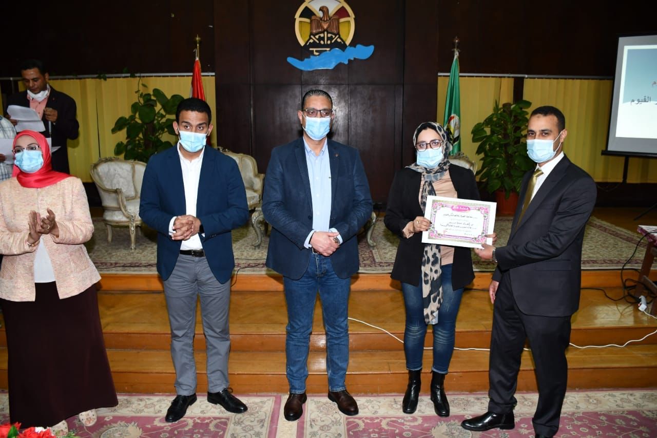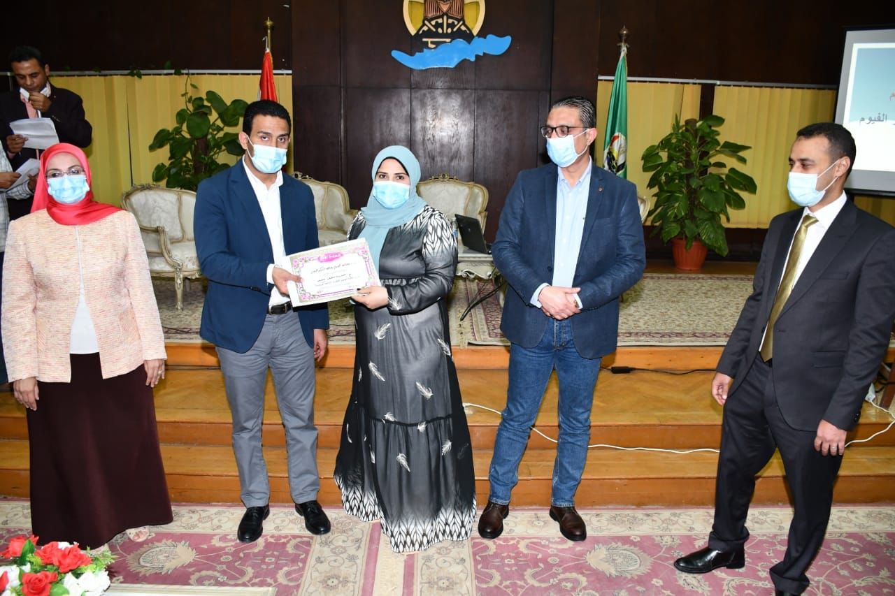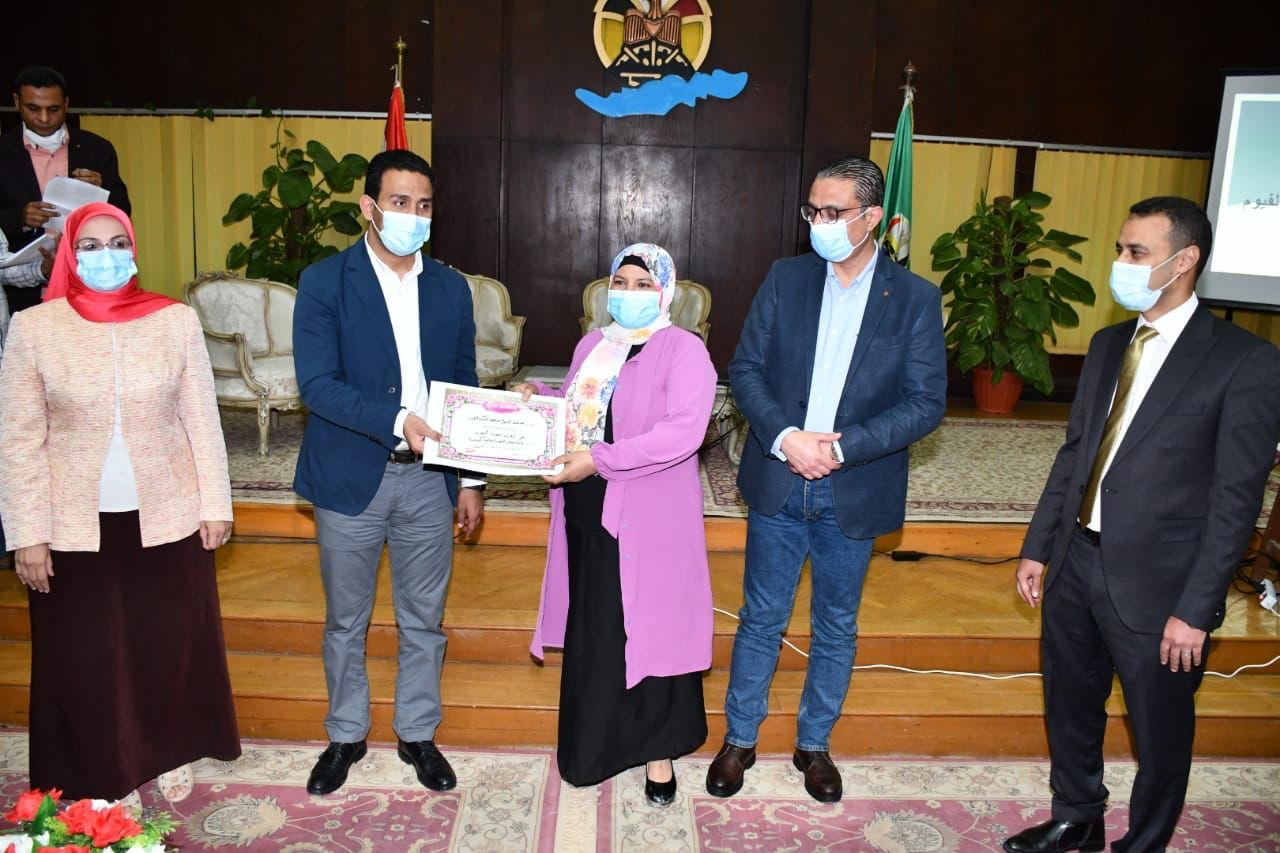جاء ذلك أثناء تكريم الدكتور أحمد الأنصاري محافظ الفيوم، عددًا من العاملين بمستشفى صدر الفيوم، لجهودهم المتميزة في مواجهة تفشي فيروس كورونا المستجد، خلال فترات الحجر المتتابعة.