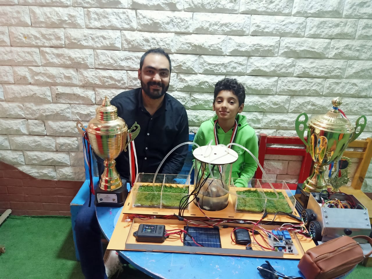 عبد الرحمن أحمد سعيد، تلميذ بإحدى مدارس شبين الكوم الخاصة، 13 سنة، تمكن بمعاونة فريق قام بتكوينه من ابتكار جهاز لري الأراضي الزراعية من خلال ريموت يتمكن من خلاله صاحب الأرض من ضبط الوقت لعمل الجهاز من أي مكان فى العالم.