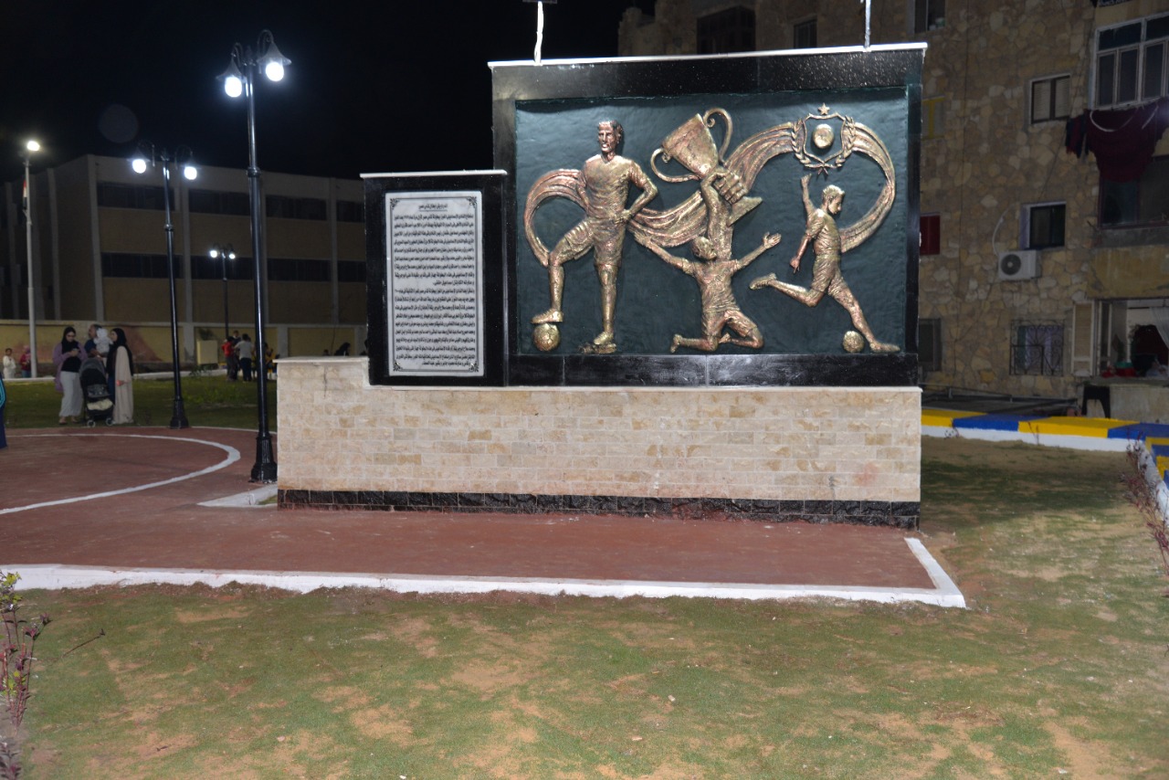يذكر أنه تم تصميم وتنفيذ النصب التذكاري بها ليحمل أسماء رموز الزمن الجميل للنادي الإسماعيلي.