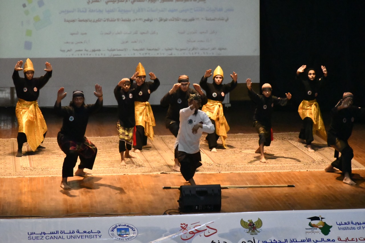 هذا وقد بدأ الحفل بالسلام الجمهوري لكلا من مصر وإندونيسيا ثم تلاوه مباركه لآيات القرآن الكريم للقارئ الشيخ مؤمن التهامى كما تم عرض فيلم تسجيلى عن معهد الدراسات الأفروأسيوية وتطوره والتفاعل مع الجانب الاندونيسى وتضمن الحفل فقرات للفنون الإندونيسية المختلفة.