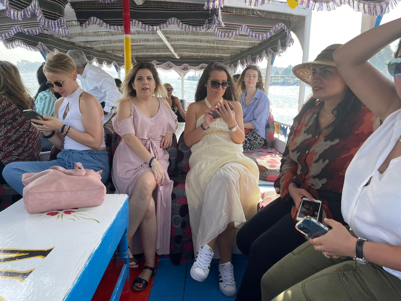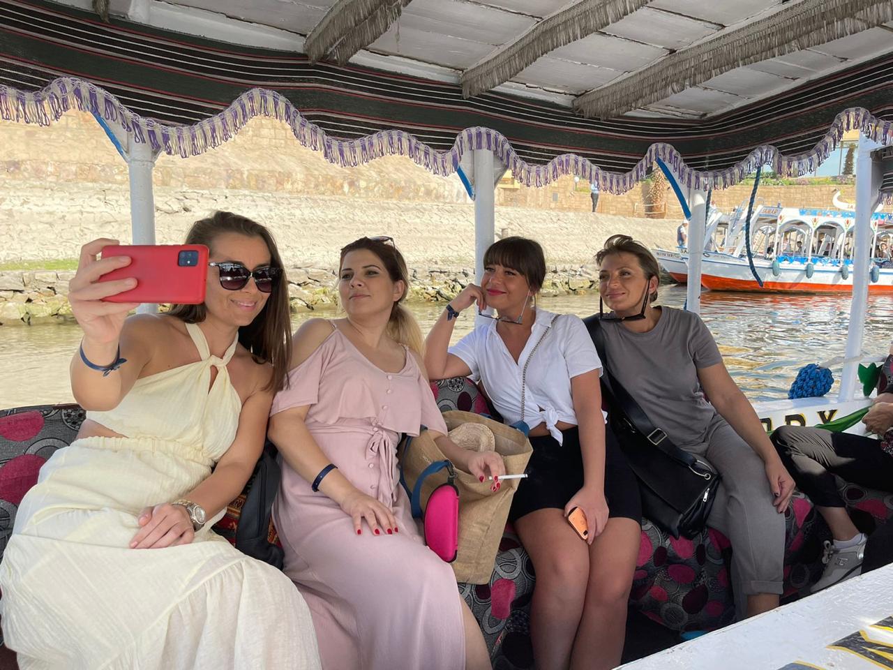 كما أجرى الفنانات التشكيليات الأجانب جولة نيلية في الأقصر، استمتعوا خلالها بجو الأقصر الرائع، بدعم من هيئة تنشيط السياحة.