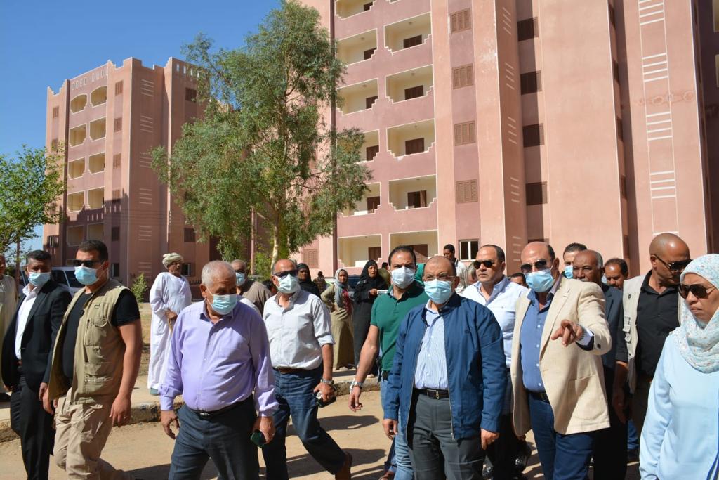 وعقب ذلك قام اللواء محمود شعراوى برفقه اللواء أشرف عطية بتفقد الوحدات السكنية بطريق العلاقى والتي تضم ٥٠٤ وحدات تم تخصيص جزء منها كإيواء عاجل للأسر المتضررة طبقًا رغباتهم، وخاصة بعد قيام المحافظة بالتنسيق مع مؤسسات المجتمع المدنى بتجهيزها بالأثاثات والأجهزة والمستلزمات المنزلية والمفروشات لإستقبال المواطنين الذين لهم رغبة الإقامة بهذه الوحدات، لحين إنتهاء الترميمات أو الإنشاءات لمنازلهم التي تعرضت للانهيار الجزئى أو الكلى، كما اطمأن الوزير والمحافظ على توفير جميع السلع الأساسية والغذائية للمواطنين في تلك الشقق وتوفير الخدمات الصحية اللازمة لهم والخبز وانابيب البوتاجاز والتي تتعاون في توفيرها جميع الوزارات المعنية بالحكومة.
