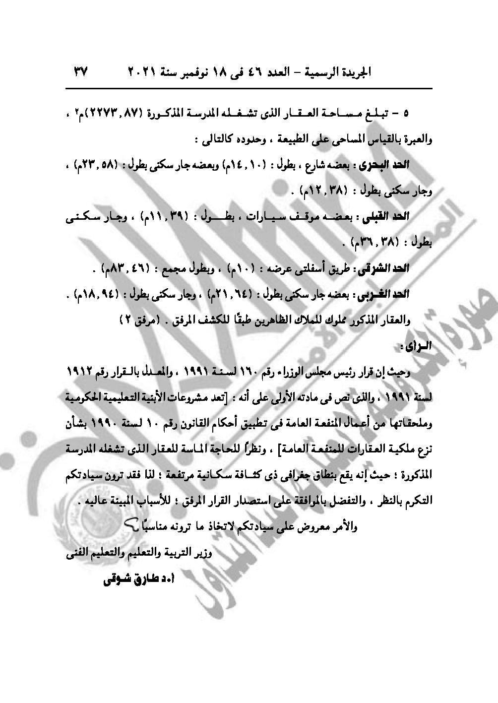 والقرار رقم 2683 لسنة 2021، بتخصيص قطعة أرض من أملاك الدولة الخاصة، ضمن ترعة شطورة الملغاة التابعة للوحدة المحلية بسلامون، مركز طما محافظة سوهاج، بالمجان، لإقامة مبنى للضرائب العقارية عليها.