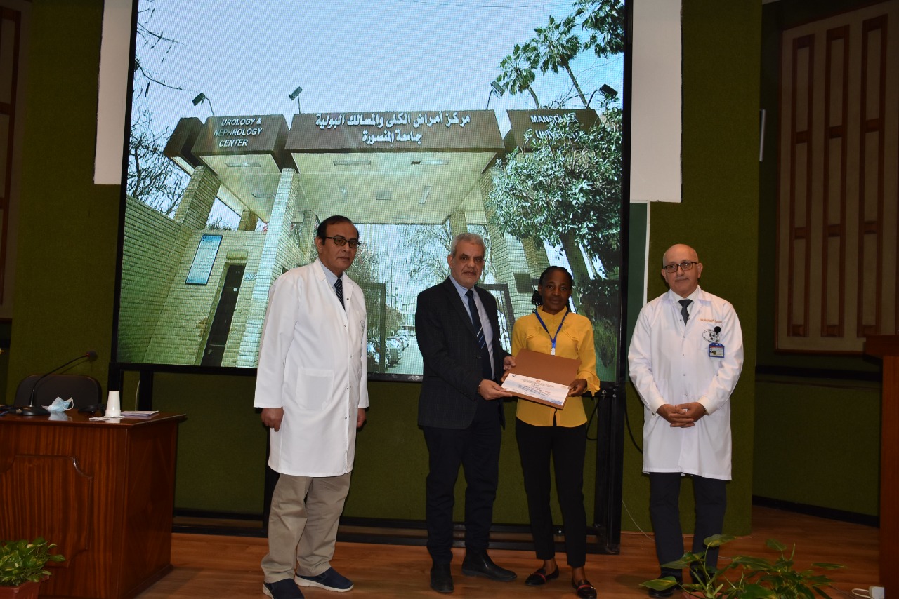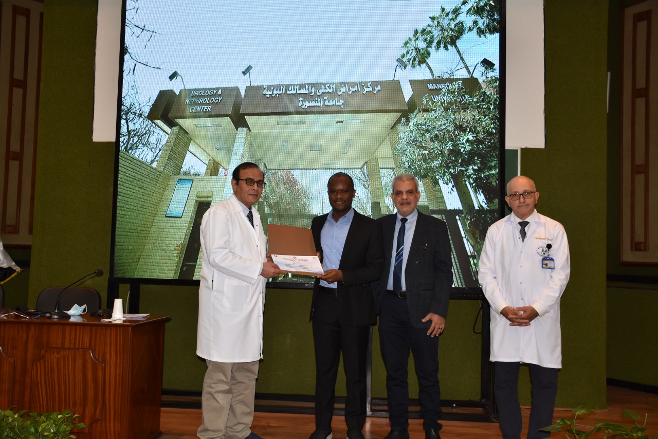 حضر الختام الدكتور باسم صلاح وديع مدير مركز أمراض الكلى والمسالك البولية جامعة المنصورة، الدكتور محمد دوابة رئيس قسم المسالك البولية، الدكتور أحمد مصباح مقرر الدورة، وقاموا بتوزيع الشهادات على الأطباء الأفارقة.