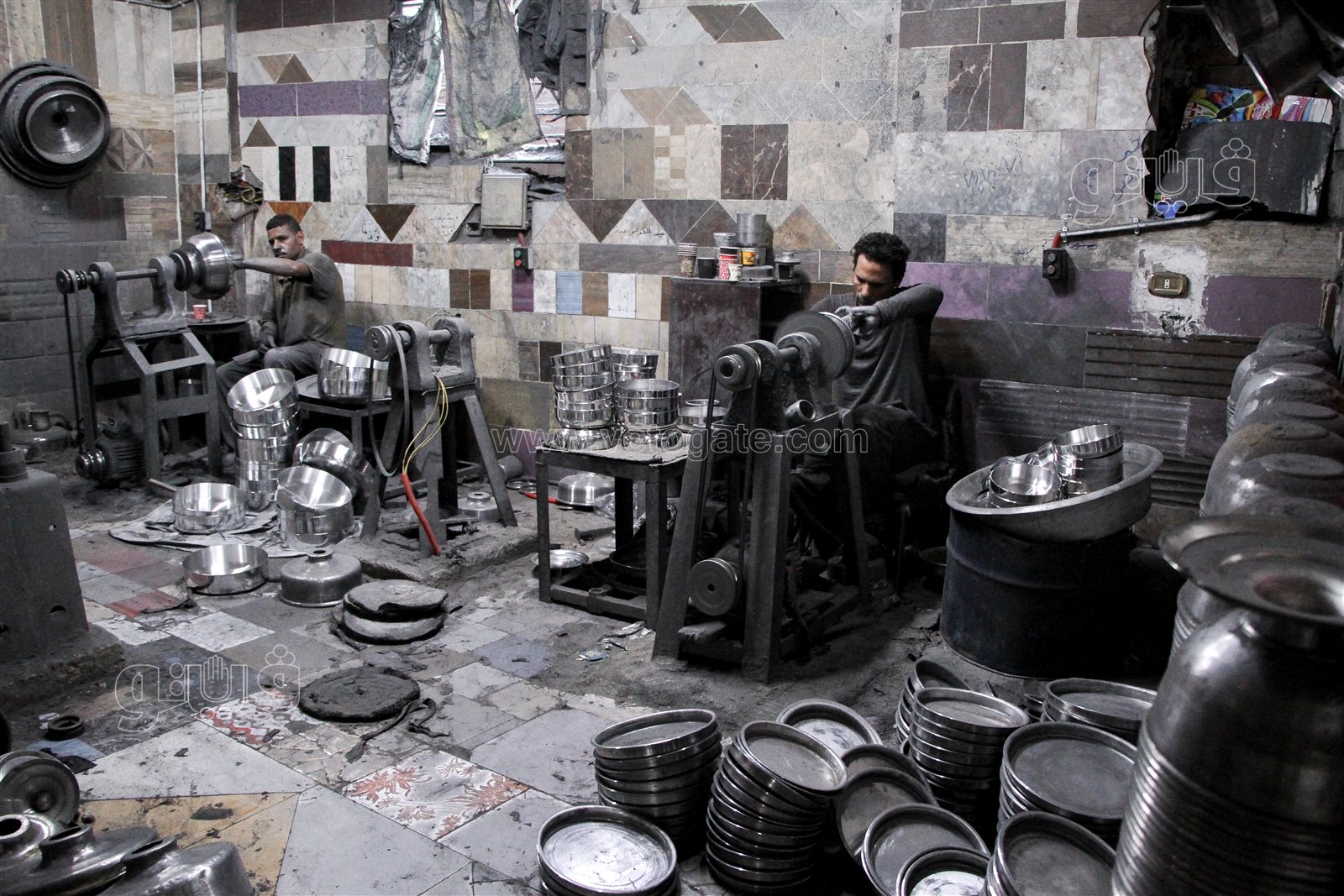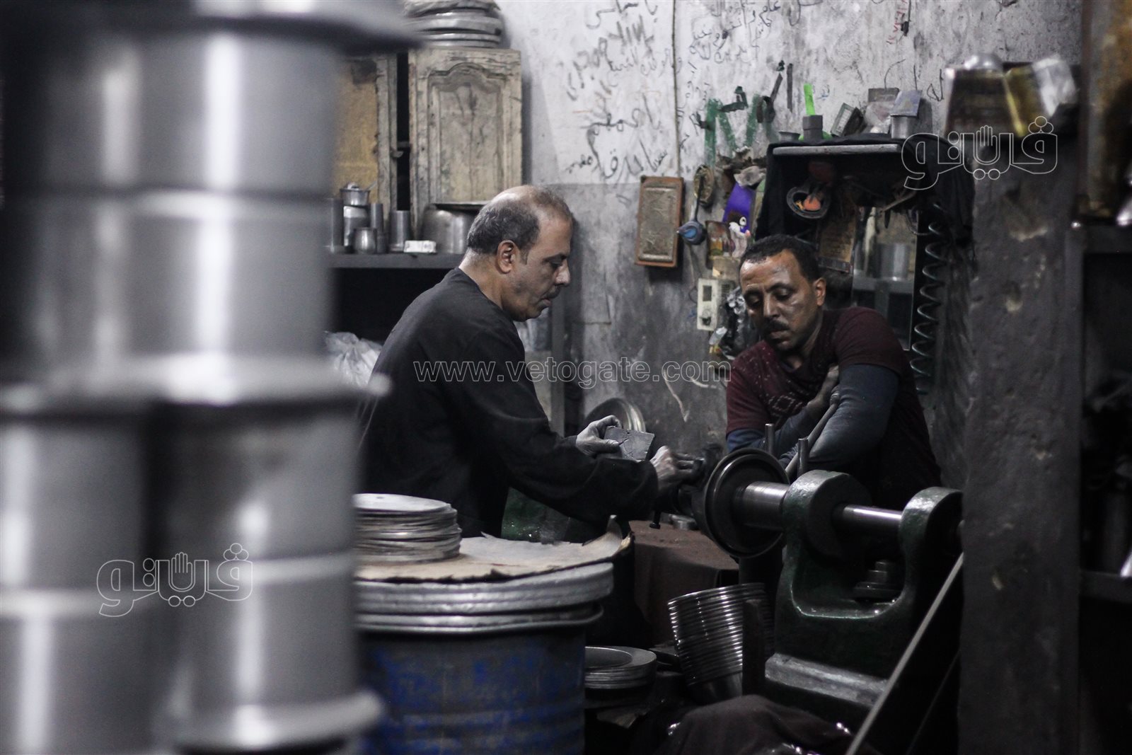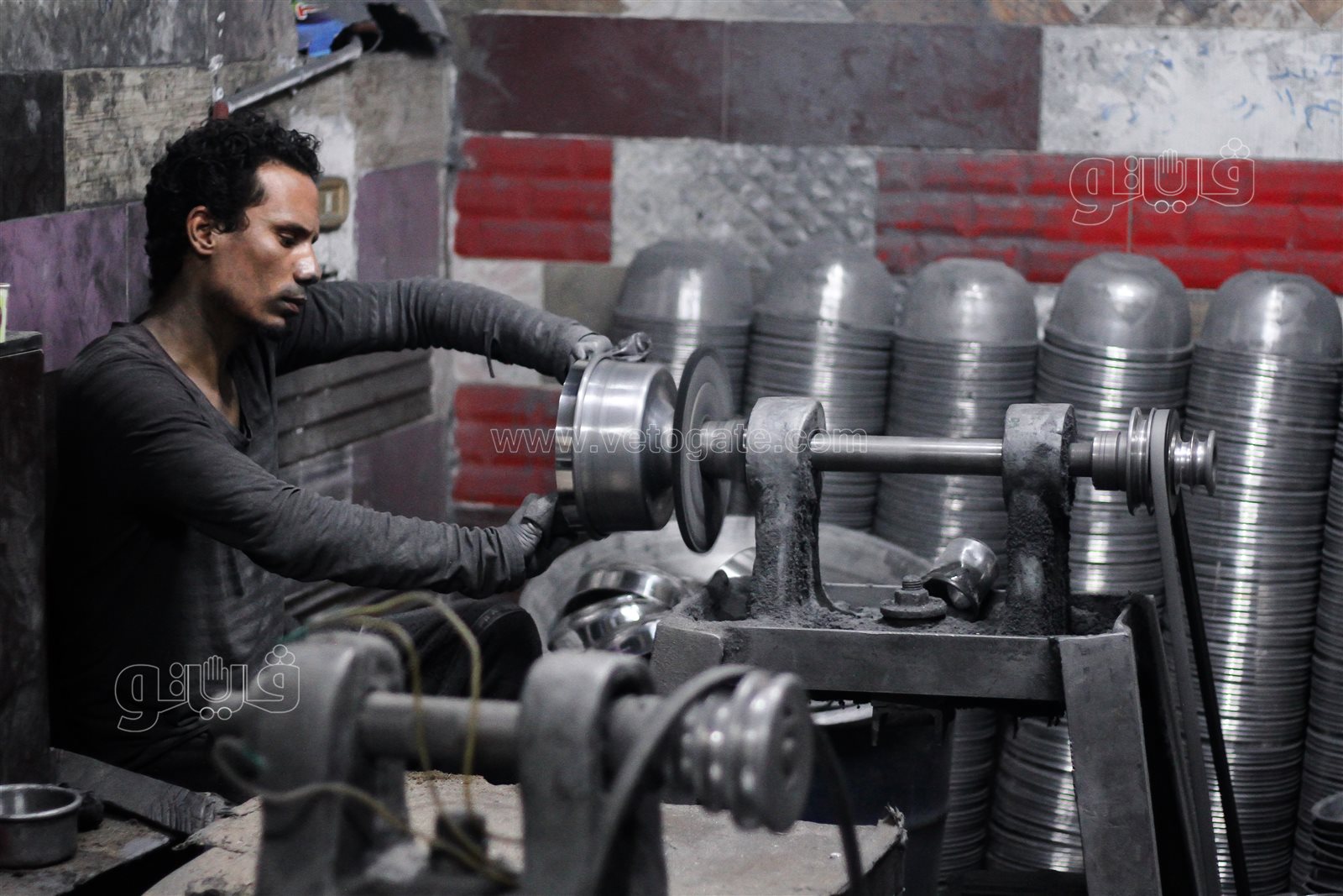 خاضت “فيتو” تجربة التجول في داخل إحدى ورش صناعة الألومنيوم التي تأسست منذ أربعين عامًا في حي الجمالية بالقاهرة، وبحلول عام 2010 انتقل مقر العمل إلى حيث نحن في منطقة المقاولون العرب بالقرب من مربع الدويقة، في بداية جولتنا أكثر ما لفت انتباهنا رجل في نهاية عقده السادس انحنى ظهره قليلًا بجسد نحيل وقامة قصيرة وعين زرقاء لامعة تختبئ خلف طبقة فضية لامعة، فهو أقدم العاملين في الورشة يأتي منذ الصباح الباكر يقف أمام آلة خرط الألومنيوم يعاون زميلة في الإمساك بقطعة الألومنيوم لتشكيلها في أولى مراحل الصناعة وهي "خرط المعدن" لتتحول القطعة إلى آنية بأحجام وصور متعددة.