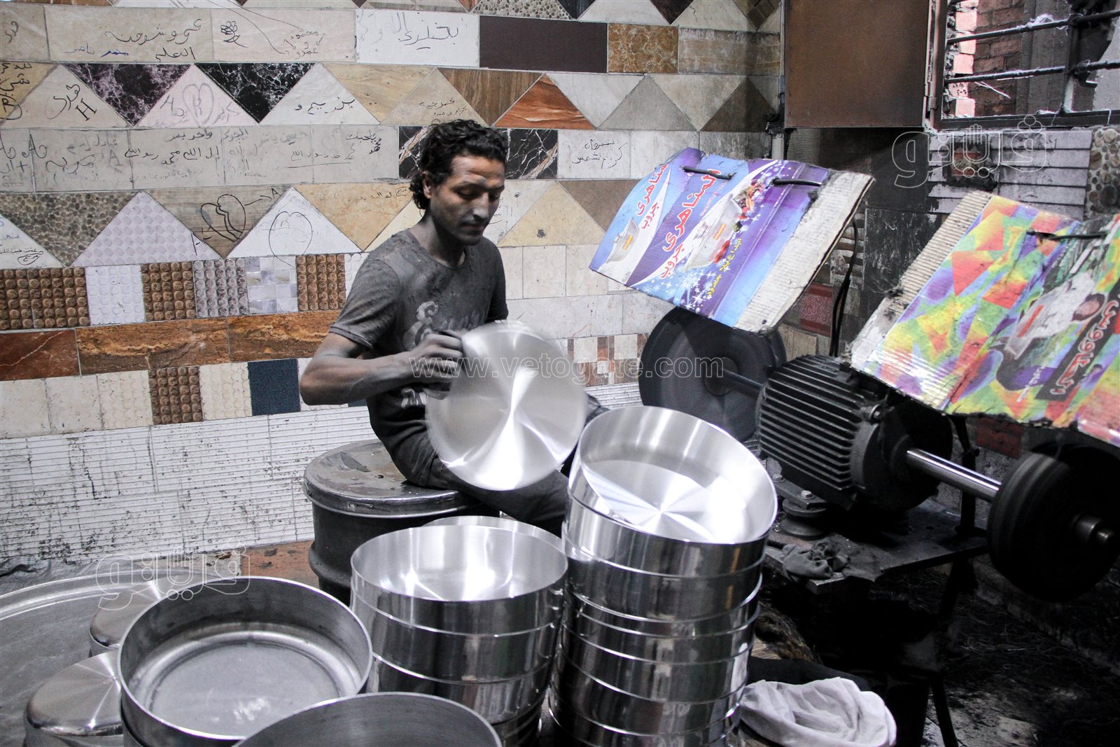 العمل لا يتوقف في هذا المكان حتى نهاية "الوردية"، على الأضواء الخافتة ووقع الموسيقى الصاخبة وبين جدران يحمل الكثير من أركانها معالم هذا المكان الذي يجمع بين جنباته 20 عاملا ينتمون إلى نسيجي الأمة منهم المسلم ومنهم المسيحي، وهي الديانة ذاتها التي يدين بها أصحاب هذه الورشة العم ثروت ومن قبله فوزي وميلاد مؤسسي هذا المكان، "المكان ده بقاله عمر، افتكر إني وأنا عندي 15 كنت باجي هنا وأنا صغير مع والدي واشوف الناس شغالة إزاي وبعد كل السنين دي وبعد نقلنا هنا في الدويقة مازلنا محافظين على الطريقة التقليدية في صناعة الأواني الألومنيوم ورثنا المهنة عنهم من 40 سنة".