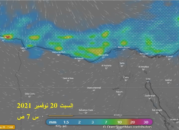 ونشر "شراقي"، صورة عن خريطة سقوط الأمطار على السواحل الشمالية والدلتا، وعدة محافظات أخرى، عبر صفحته الرسمية على موقع التواصل الاجتماعي "فيسبوك"، قائلًا: "تشير الأقمار الصناعية إلى سقوط أمطار بدءًا من فجر السبت على جميع المدن الساحلية للبحر المتوسط (السلوم غربًا حتى رفح شرقًا) ثم تمتد إلى الدلتا بعد الظهر حتى العاشرة مساء".