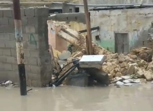 انهيار سور منزل وإغلاق للطرق بسبب الأمطار الغزيرة على شمال سيناء |صور