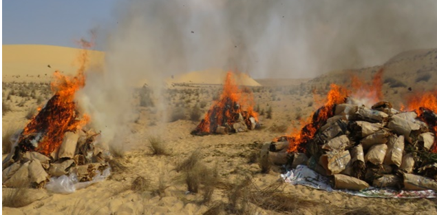 وأسفرت الجهود عن ضبط 28 مخزنا بداخلها كميات من مخدر البانجو الجاف بلغت 13175 كيلو جرام وتم إبادة الزراعات المضبوطة، تم اتخاذ الإجراءات القانونية.