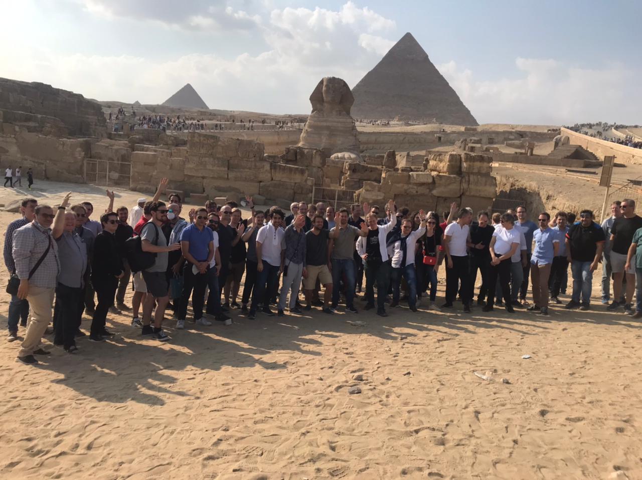 وكان في استقبالهم أشرف محي الدين مدير عام منطقة آثار الهرم، والذي أكد أن الزيارة شملت جولة للهرم الأكبر ومنطقة البانوراما وتمثال أبو الهول، مشيرا إلى أن اعضاء الأوركسترا والذي يبلغ عددهم ٩٠ عضوا، حرصوا على تسجيل زيارتهم للمنطقة بالتقاط العديد من الصور التذكارية.