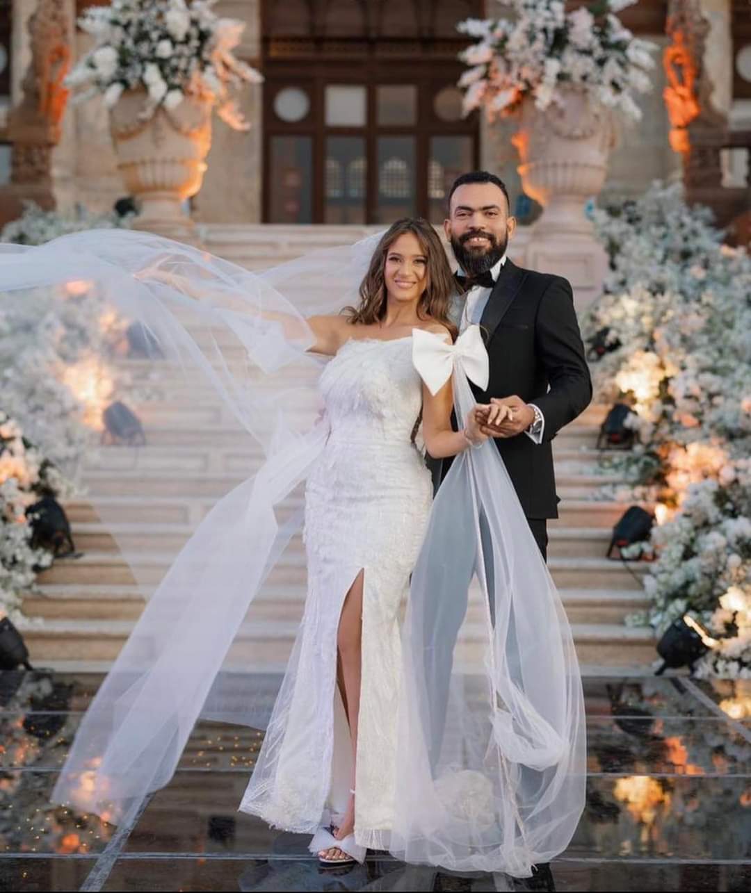 ومن اللافت للأنظار أن حفل الزفاف أُقيم داخل قصر البارون وسط أجواء أثرية من طراز خاص.