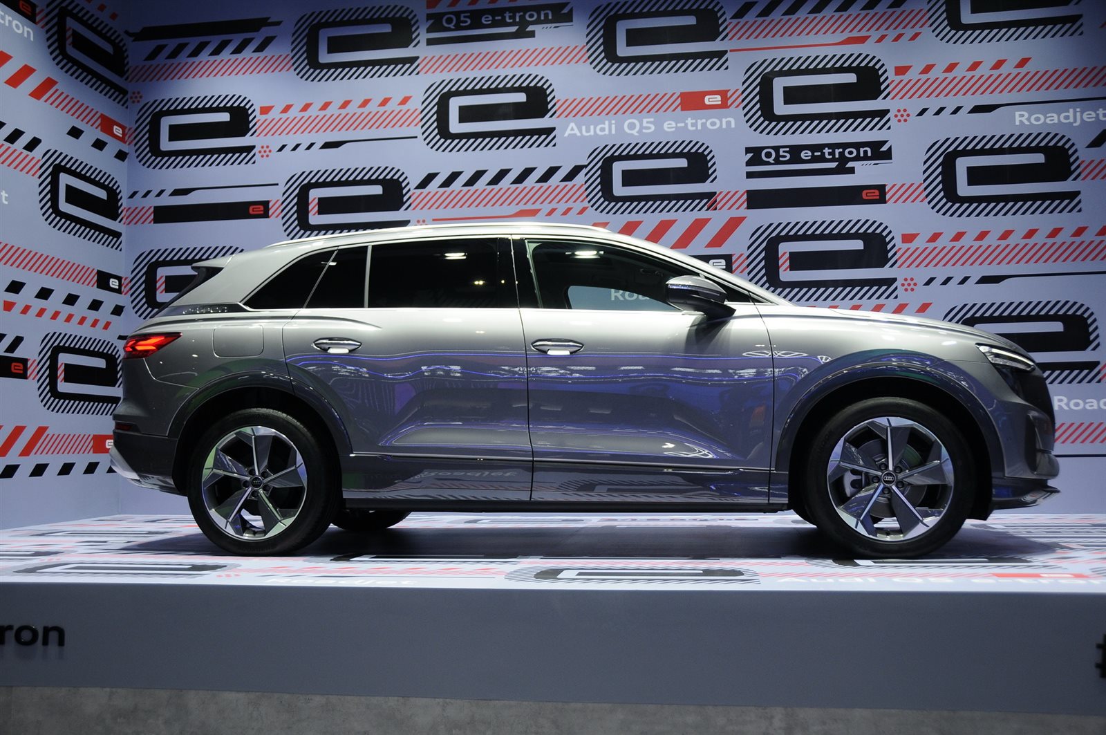 ومع ذلك، كما يوحي الاسم، فهي أكبر حجمًا، ويبلغ طولها 4876 ملم بقاعدة عجلات تبلغ 2965 ملم، على عكس Q4 بطول 4588 ملم وقاعدة عجلات 2764 ملم. كلا الطرازين هما شقيقان لـ فولكس فاجن ID.4 / ID.5 وفولكس فاجن ID.6 الموجه للصين فقط، مع نهج أكثر تميزًا في التصميم والمعدات. في جوهره، يعتبر Q5 ايه ترون هو نسخة متميزة من ID.6.