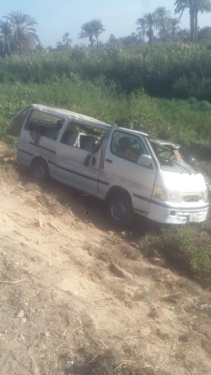 إصابة 16 راكبا في انقلاب ميكروباص بترعة دلهانس ببني سويف
