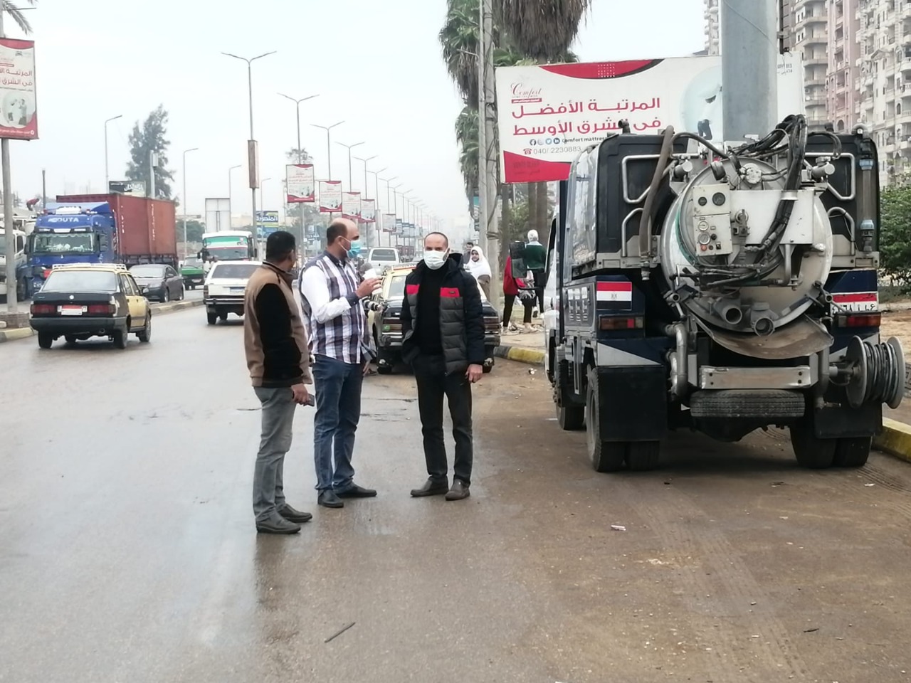 حيث تابع محافظ أماكن تمركز سيارات الأحياء والمدن وكذلك سيارات شركة مياه الشرب والصرف الصحي في الأماكن المتفق عليها طبقًا للاجتماعات التنسيقية استعدادًا لسقوط الأمطار.