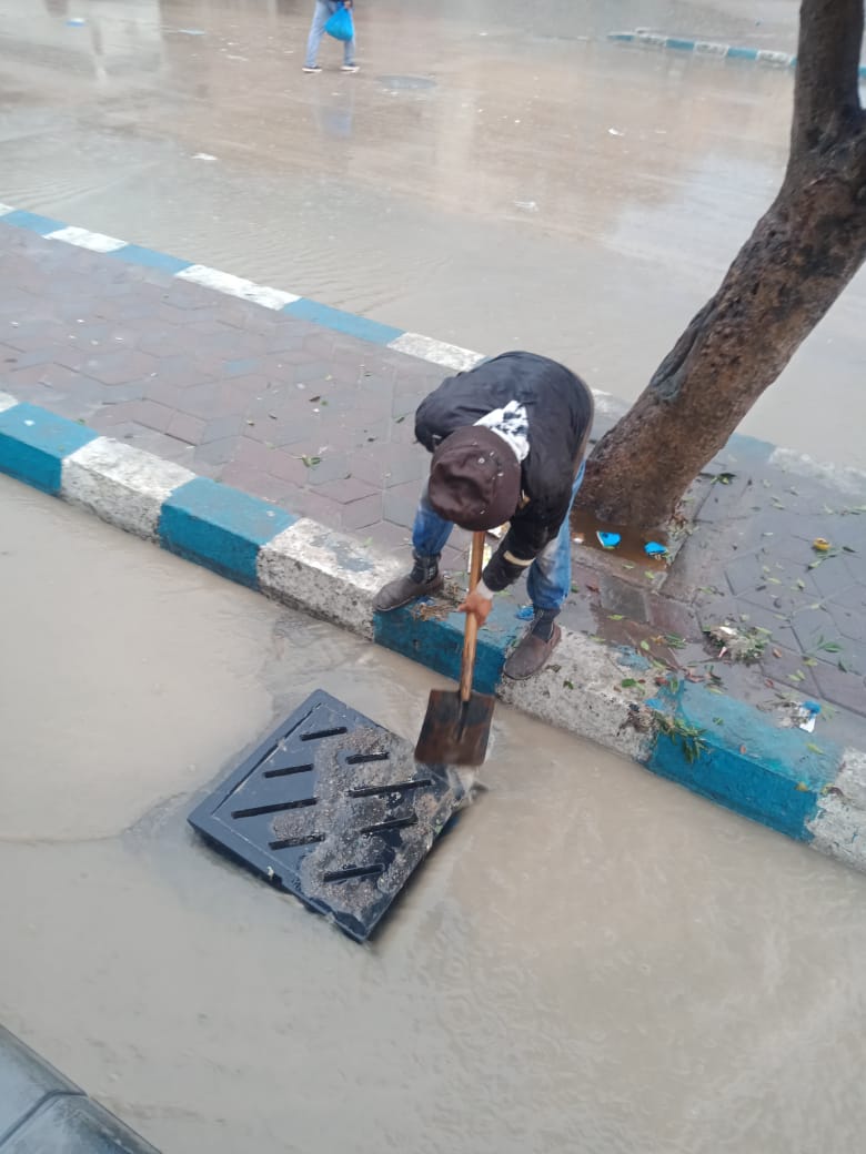 فرق طوارئ لرفع تراكمات مياه الأمطار بمطروح | صور