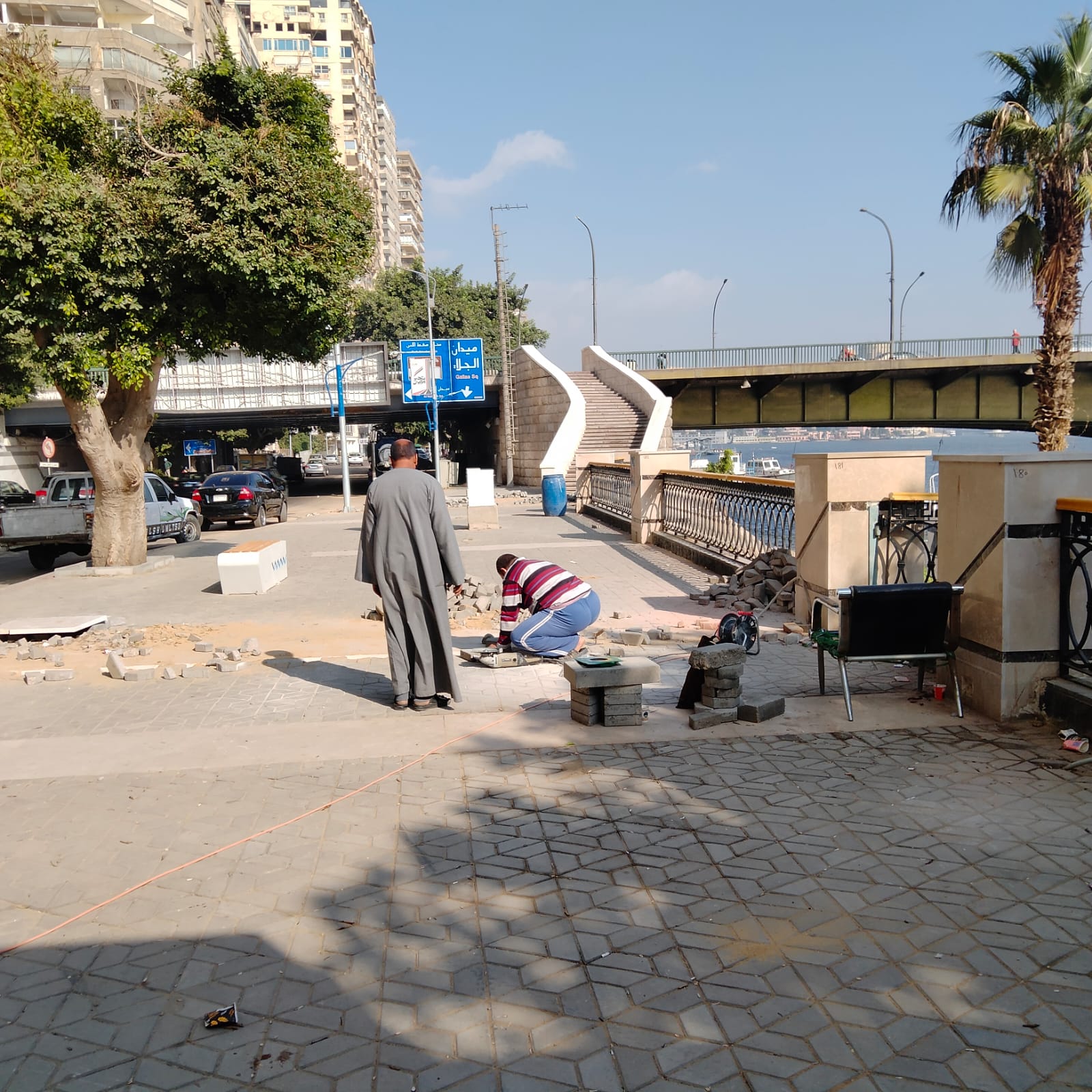 كما قام رئيس الحى بمتابعة أعمال التطوير بشارع البحر الأعظم وش النيل وشارع مراد ومازال العمل مستمر.