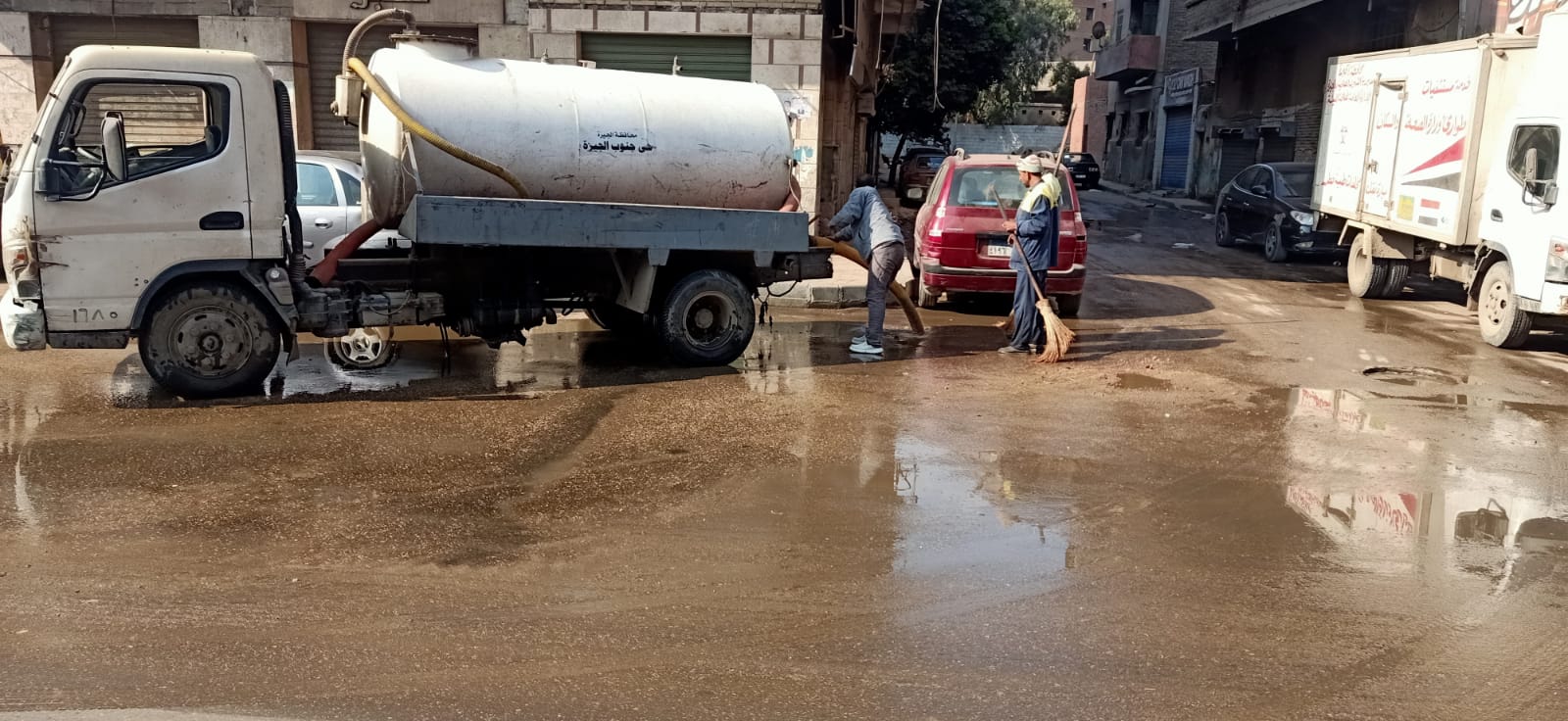 كما تم الانتهاء من تطهير بلاغات الأمطار الخاصة بشارع المدرسة ومطلع ومنزل كوبرى والى منطقة القصبجي بالتعاون مع رجال المرافق بالمنيب ومازال العمل مستمر لرفع كفاءة الشارع الجيزاوى.