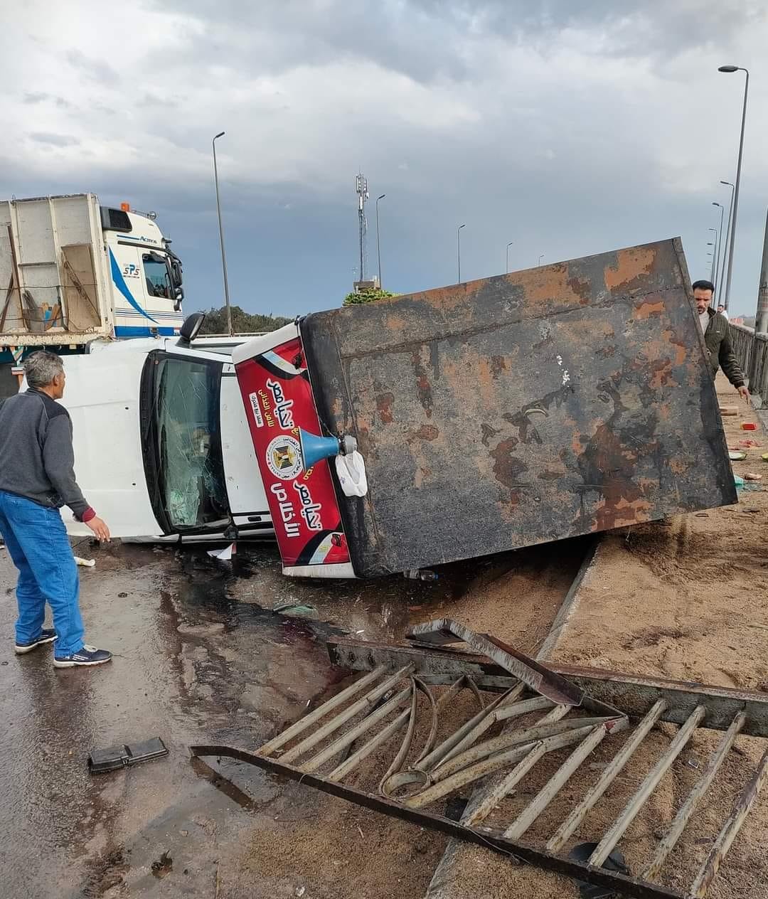 انتقلت قوة أمنية من المباحث الجنائية، وسيارة إسعاف إلى محل الواقعة، وتبين من التحريات الأولية، إصابة شخصين، في حادث انقلاب سيارة ربع نقل، أعلي كوبري المعاهدة، بعد اختلال عجلة القيادة بيد السائق، بسبب الأمطار، والسرعة الزائدة.