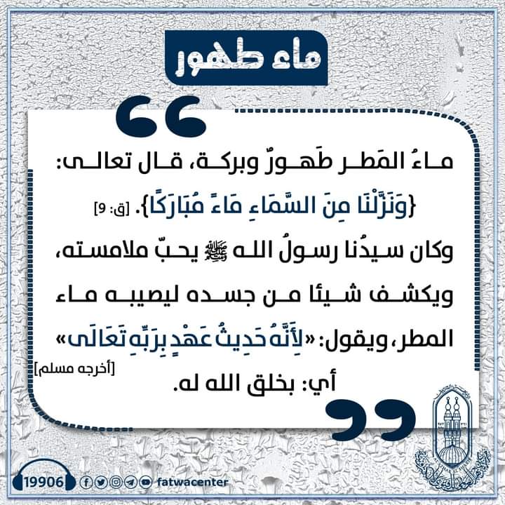 وأكدت أن نزول المطر يعنى الماء الذى لا تحيا المخلوقات إلا به فالماء هو أصل الحياة ومنحة السماء قال تعالى " أَوَلَمْ يَرَ الَّذِينَ كَفَرُوا أَنَّ السَّمَاوَاتِ وَالْأَرْضَ كَانَتَا رَتْقًا فَفَتَقْنَاهُمَا ۖ وَجَعَلْنَا مِنَ الْمَاءِ كُلَّ شَيْءٍ حَيٍّ ۖ أَفَلَا يُؤْمِنُونَ (30الانبياء