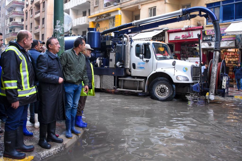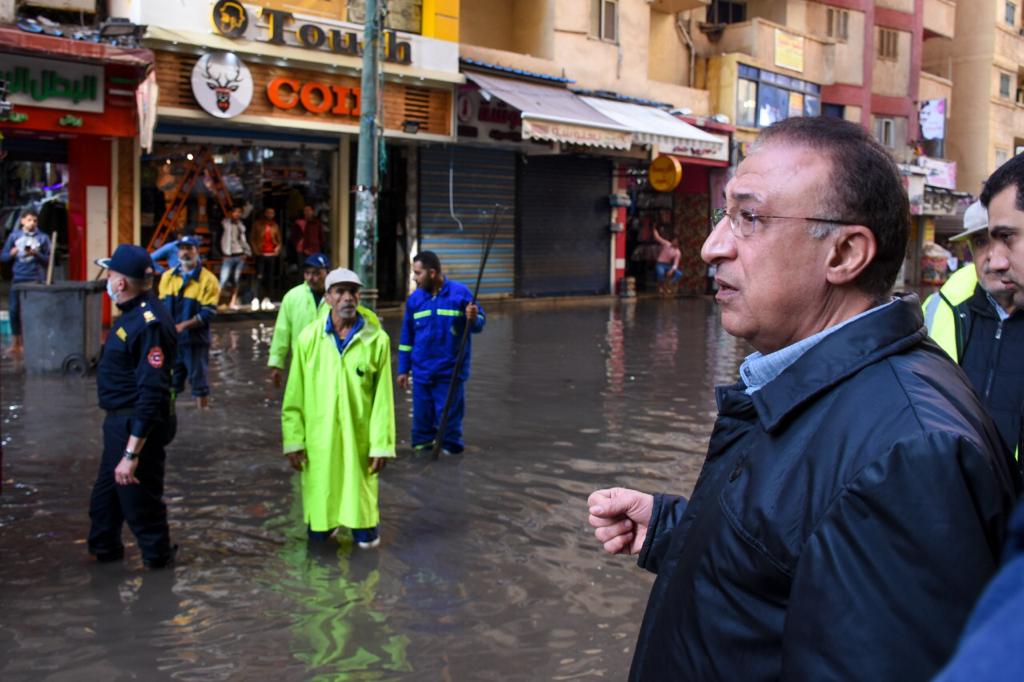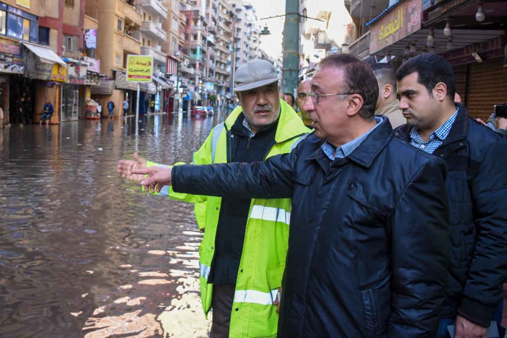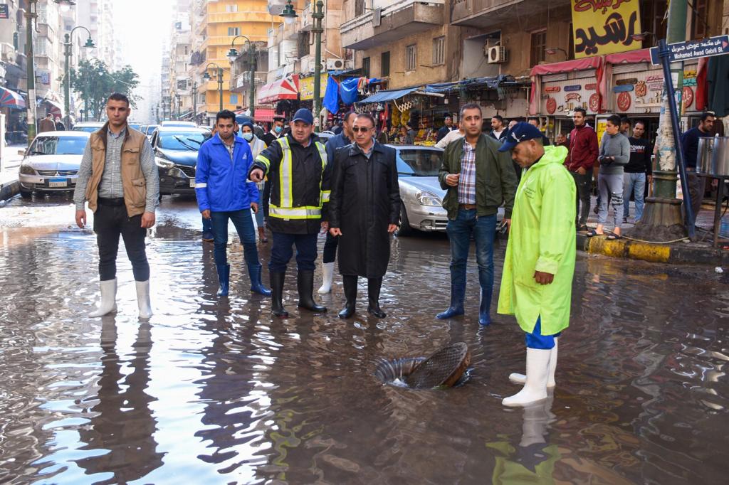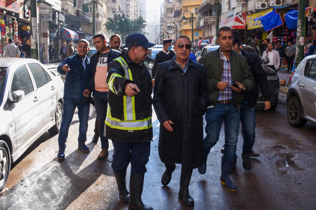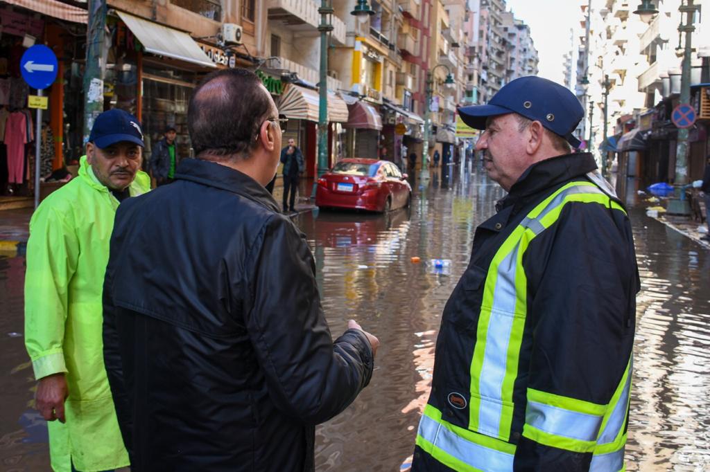 محافظ الإسكندرية يرفض مغادرة شارع خالد بن الوليد حتى إزالة تراكمات الأمطار