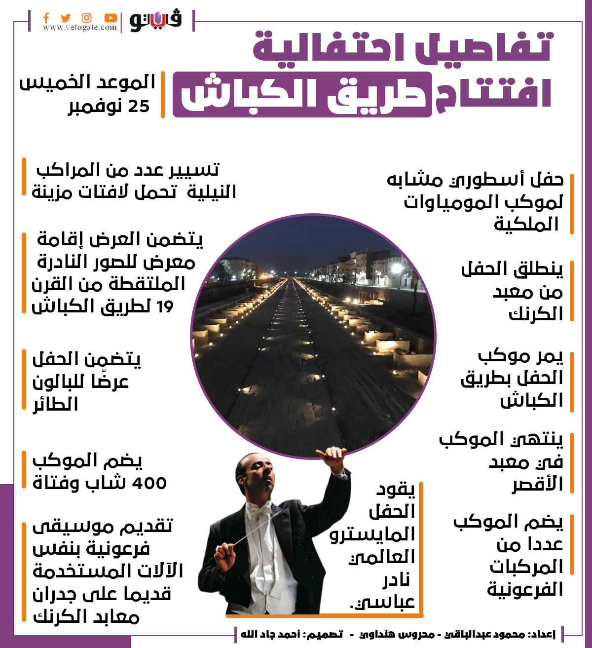 تفاصيل احتفالية افتتاح طريق الكباش| إنفوجراف الثلاثاء 23/نوفمبر/2021 - 04:03 م 11/23/2021 4:03:41 PM محمود عبد الباقي - محروس هنداوي شارك طباعة 18 حجم الخط شارك طباعة احتفال افتتاح طريق الكباش احتفالية طريق الكباش افتتاح طريق الكباش ترميم طريق الكباش موعد حفل افتتاح طريق الكباش