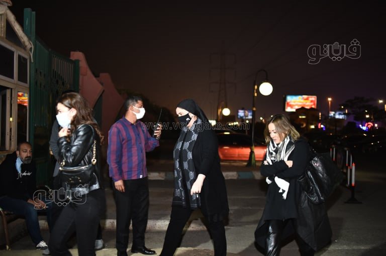 وكان أول الحضور الداعية والمنتج معز مسعود وزوجته الفنانة حلا شيحة حيث حضرا في وقت مبكر لتقديم واجب العزاء.