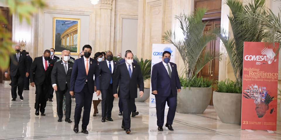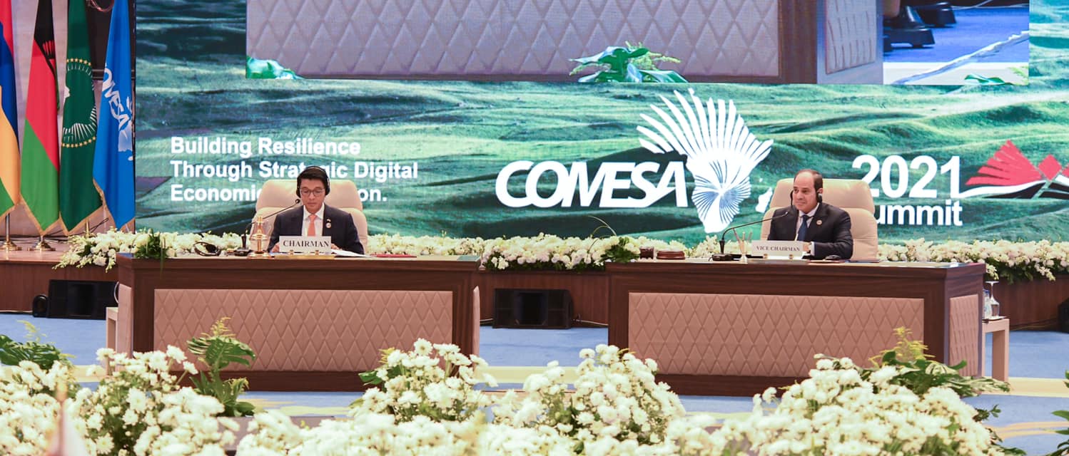 لقد شهد الاقتصاد العالمي والإقليمي، العديد من التطورات منذ انعقاد القمة الأخيرة للكوميسا في يوليو ٢٠١٨، في العاصمة الزامبية "لوساكا" حيث دخلت منطقة التجارة الحرة القارية، حيز النفاذ في يناير٢٠٢١ كما صاحب التقدم المحرز، في التكامل الاقتصادي القاري، العديد من التحديات التي واجهتها دول الإقليم والعالم أجمع، بسبب جائحة "كورونا" وعلى الرغم من الجهود المبذولة، على المستوى الدولي والقاري والإقليمي، لمواجهة هذه الجائحة إلا أن الإقليم ما زال يعاني من آثارها السلبية وتتسم وتيرة التعافي منها بالبطء وهو الأمر الذي يضع على عاتق هذه القمة، العديد من المسئوليات التي يتعين معها تضافر جهودنا المشتركة، لمواجهة هذه التحديات وهو ما يجسده عنوان القمة: "تعزيز القدرة على الصمود، من خلال التكامل الاقتصادي الرقمي الإستراتيجي".