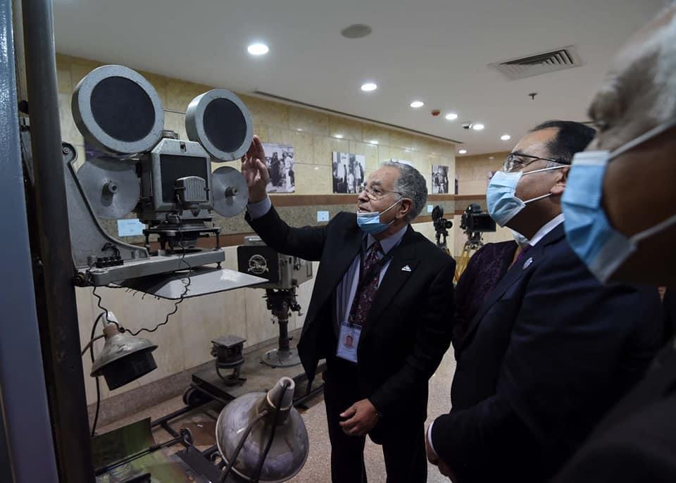 وأجرى الدكتور مصطفى مدبولي جولة تعرف خلالها على جانب كبير من مكونات المبنى الجديد للمعهد العالي للسينما، وشملت الجولة تفقد متحف للمعدات السينمائية التراثية، ثم زيارة البلاتوه السينمائي الكبير.