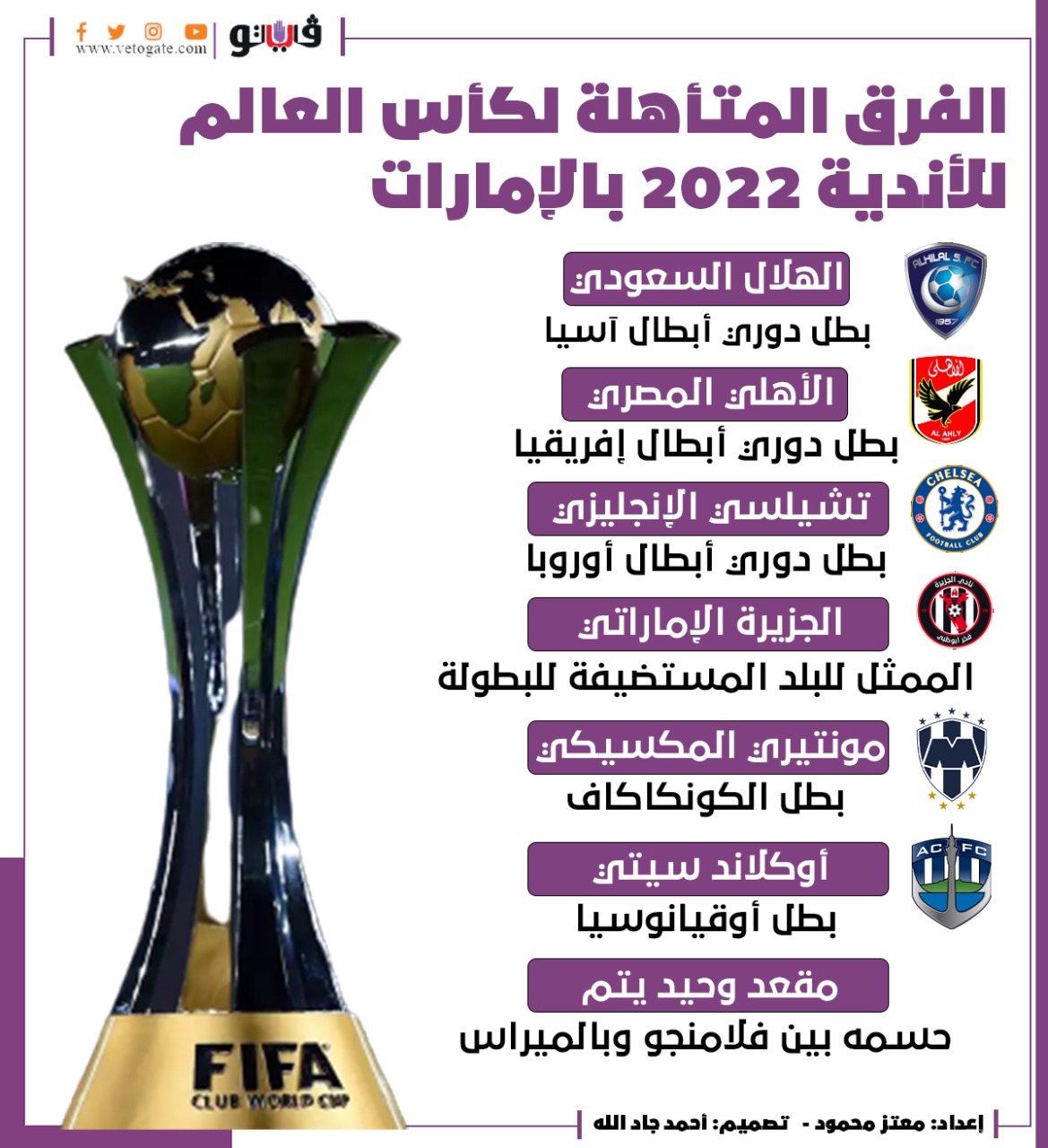 الفرق المتأهلة لكأس العالم للأندية 2022 بالإمارات | انفوجراف الثلاثاء 23/نوفمبر/2021 - 10:12 م 11/23/2021 10:12:55 PM الفرق المتأهلة لكأس العالم للأندية 2022 بالإمارات معتز محمود شارك طباعة 18 حجم الخط شارك طباعة كأس العالم للأندية كأس العالم الإمارات انفوجراف 2022