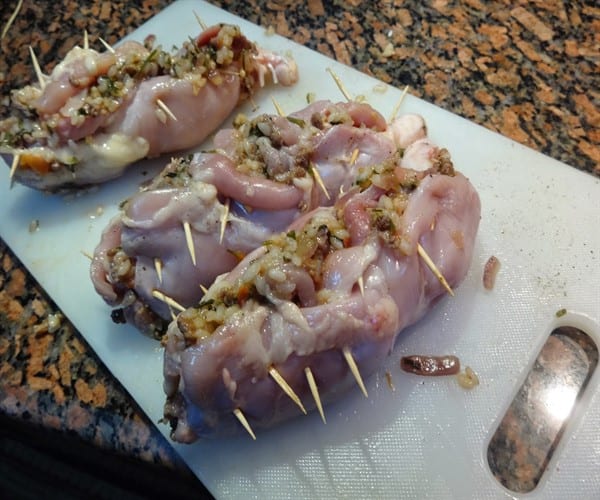 - نحشو الحمام من الداخل بالفريك وندخل القليل منه أسفل الجلد، ثم نغلق الحمام بالخلة أو نخيطه بالفتلة والإبرة حسب الرغبة.
