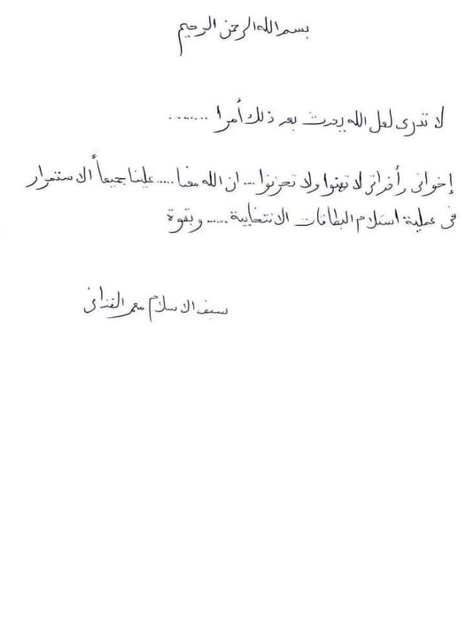 وقبل وقت سابق دعا سيف الإسلام القذافي الليبيين لاستمرار استلام بطاقات الانتخاب بعد استبعاده من الترشح للرئاسة، وذلك علي الرغم من استبعاده من الترشح في الانتخابات الليبية، وذلك حسبما أفادت شبكة وقناة “سكاي نيوز” عربية.