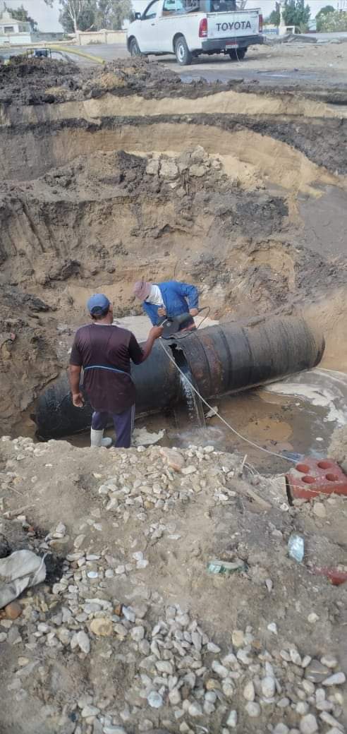 إصلاح خط مياه رئيسي مغذي لمدينة بئر العبد | صور