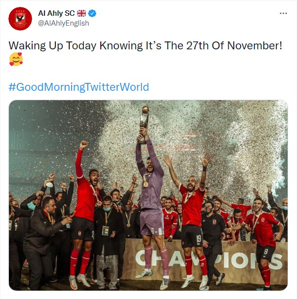 وكتب النادي الأهلي تغريدة على تويتر "استيقظوا اليوم وأنتم تعرفون أنه 27 نوفمبر"