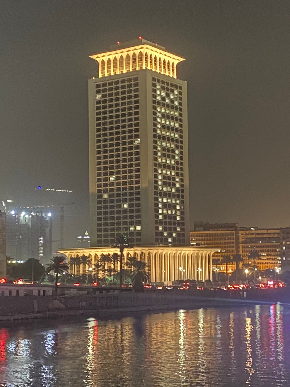 تزينت وزارة الخارجية المصرية، بإضاءة المبنى الخاص بها، على كورنيش النيل بماسبيرو، احتفالًا بيوم المتوسط، والذي من المقرر أن يتم انطلاقه غدا الأحد.