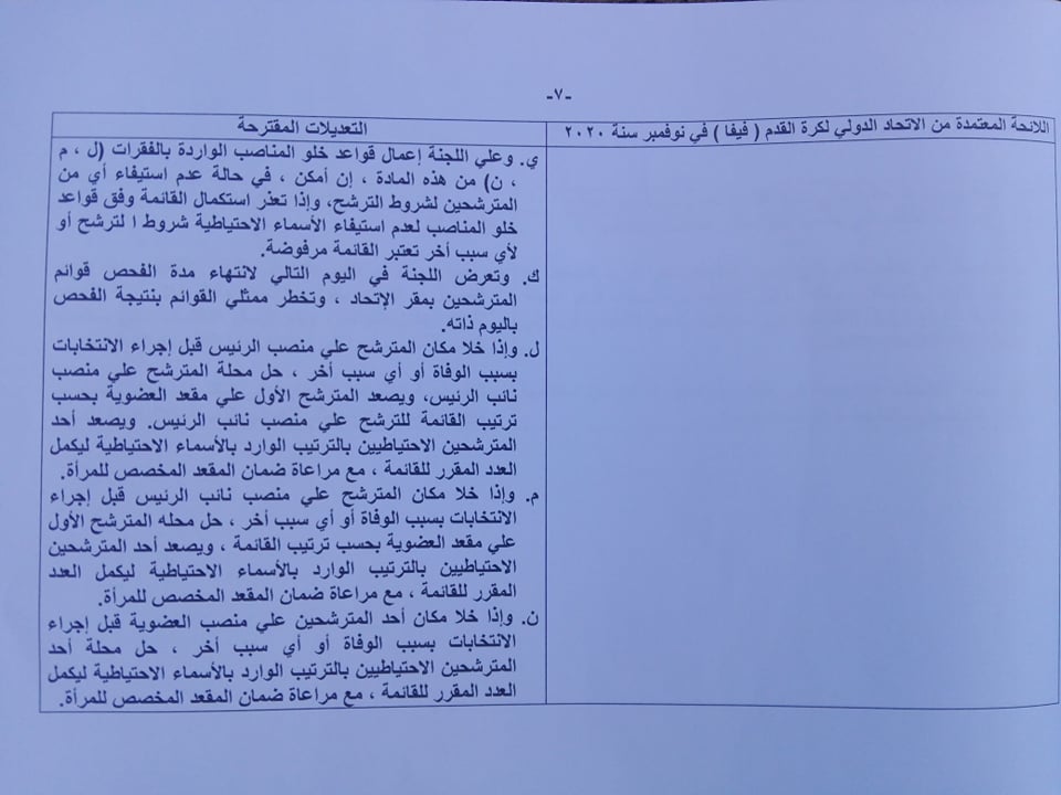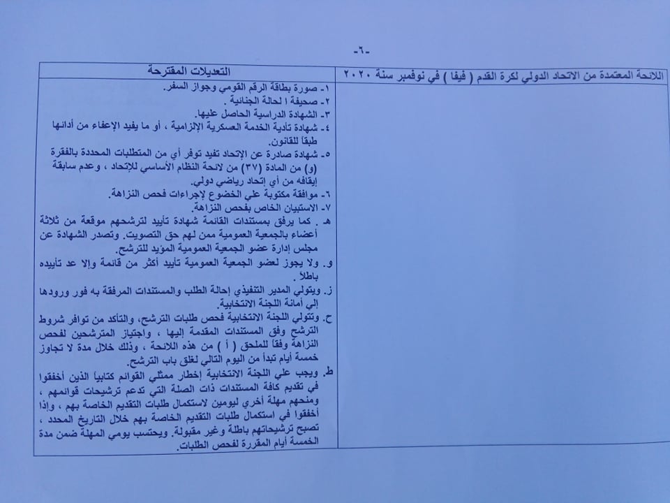 ووافق الاتحاد الدولي على مناقشة 5 تعديلات في لائحة اتحاد الكرة، خلال الجمعية العمومية المقبلة أولها بند القائمة المغلقة من خلال اختيار قائمة كاملة، وأن تكون الانتخابات بنظام القوائم وليست مقاعد فردية من أجل ضمان تجانس المجموعة المختارة لإدارة الجبلاية وانسجامها.