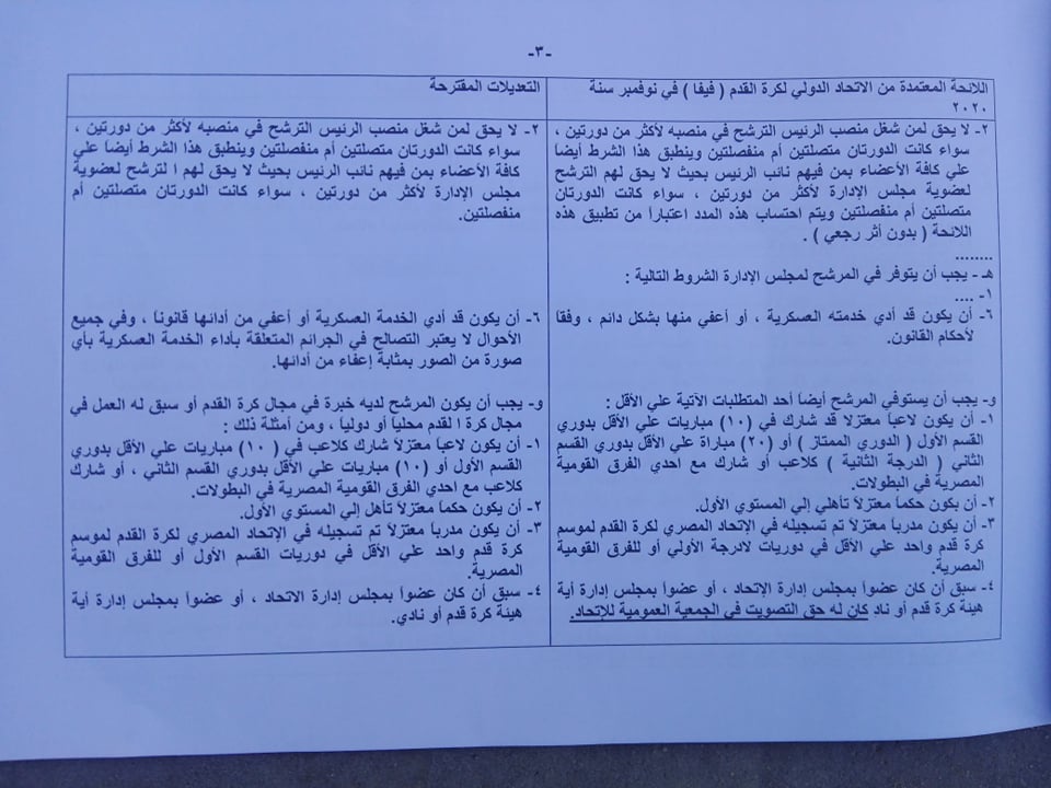 ووافق الاتحاد الدولي لكرة القدم على عقد الجمعية العمومية لاتحاد كرة القدم يوم 28 نوفمبر الحالي، من أجل مناقشة تعديلات لائحة اتحاد الكرة.