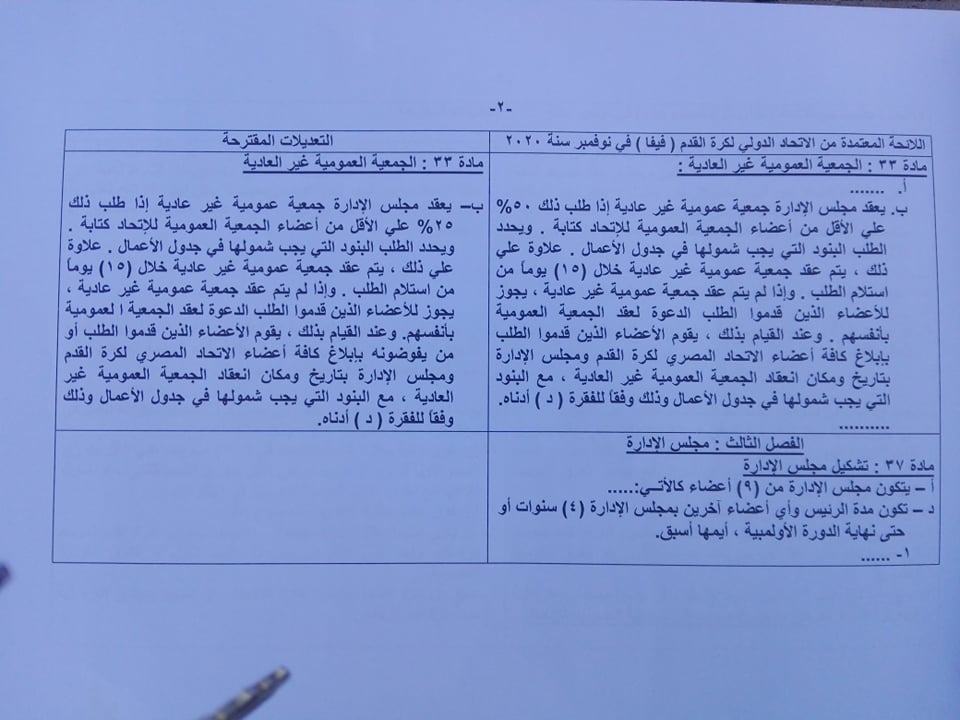 اعتمدت الجمعية العمومية الطارئة لاتحاد الكرة، التعديلات في لائحة الجبلاية والمقرر ارسالها إلى الاتحاد الدولي لكرة “فيفا”.