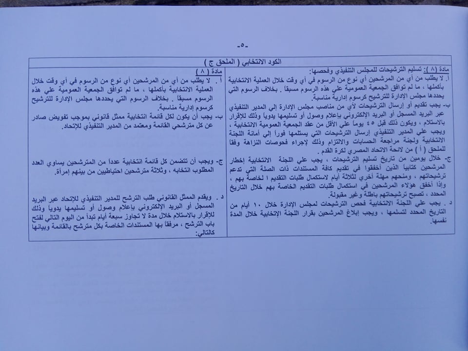 تتضمن البنود إتاحة الفرصة للشخصيات العامة للترشح في انتخابات اتحاد الكرة وعدم اقتصار الأمر على المسجلين في اتحاد الكرة كلاعبين سابقين في أي من المسابقات أو حكام.