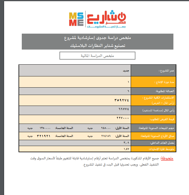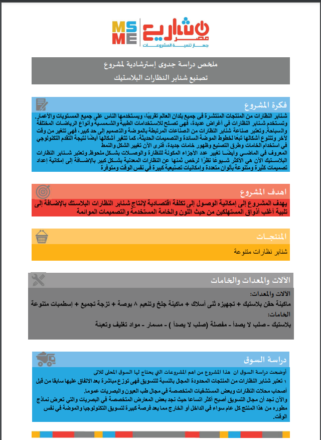 ونقدم اليوم كافة التفاصيل المتعلقة لملخص دراسة جدوى استرشادية لمشروع تصنيع شنابر النظارات البلاستيكية.
