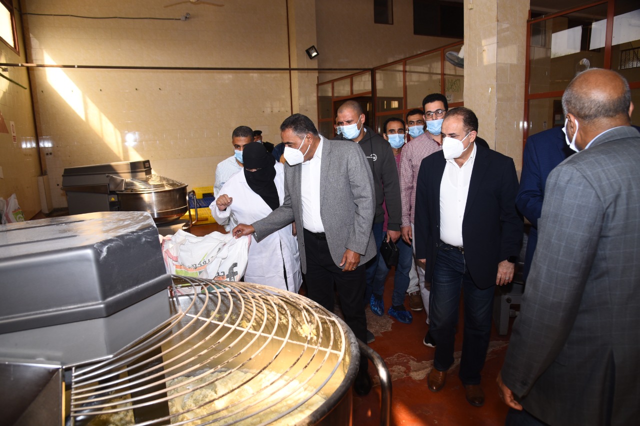 وتفقد محافظ مطروح خطوط الإنتاج بدءًا من مرحلة دخول العمال والتطهير والتعقيم ثم مرحلة عجن الدقيق مرورًا بالتقطيع والفرن والتغليف والتعبئة وكذلك ثلاجات التبريد والحفظ لمستلزمات الوجبة والعصائر.