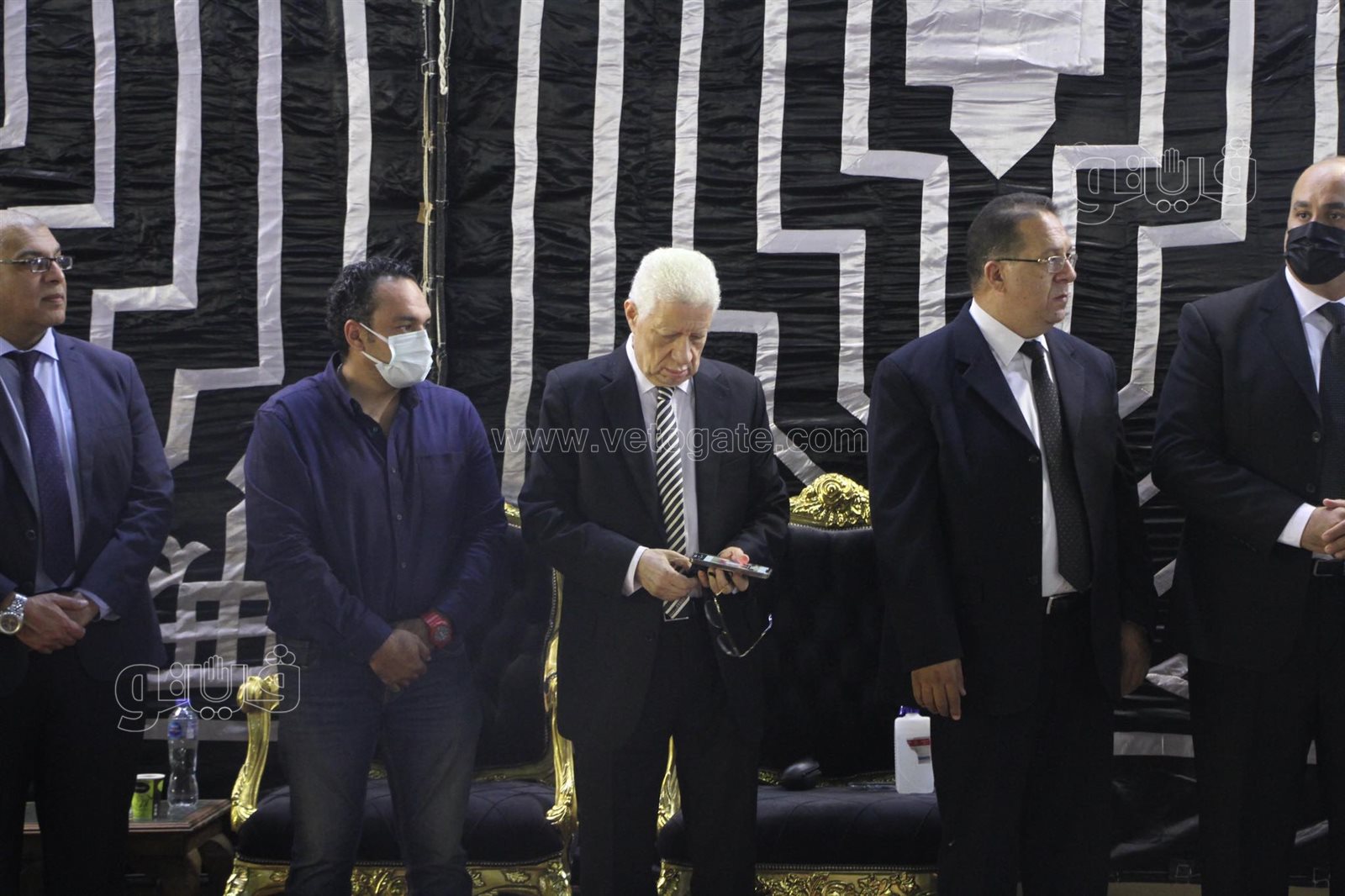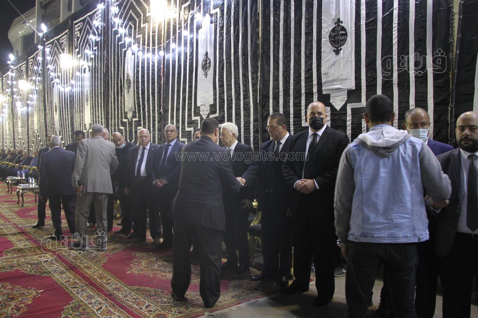 ويحضر العزاء اللواء علاء مقلد عضو مجلس إدارة الزمالك، جوهر نبيل عضو مجلس إدارة الأهلى السابق، وحازم إمام نجم الأبيض السابق، حيث تم تخصيص مكان خاص لعزاء السيدات داخل السرادق الكبير بنادي الزمالك، إسماعيل يوسف عضو مجلس إدارة الزمالك، رؤوف جاسر عضو مجلس إدارة الأبيض السابق، المستشار عادل الشوربجي، رئيس لجنة الاستئناف باتحاد الكرة، بجانب أحمد مرتضى عضو مجلس إدارة الزمالك السابق، وكمال درويش رئيس النادي الأسبق.