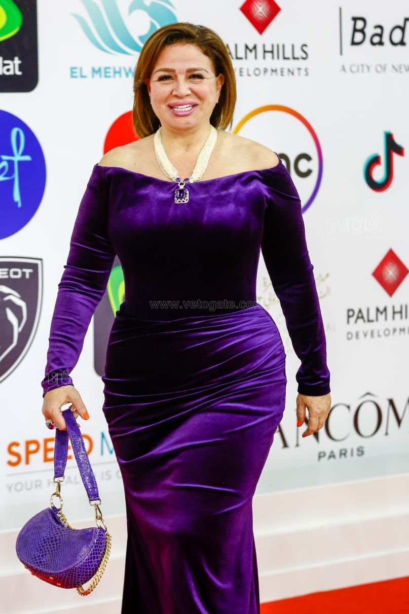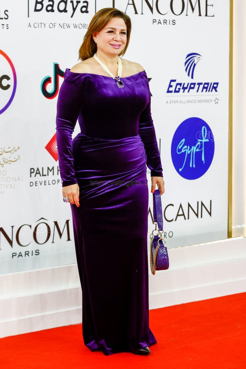 إلهام شاهين بفستان بنفسجي على ريد كاربت "رجل بلا وطن" بالقاهرة السينمائي