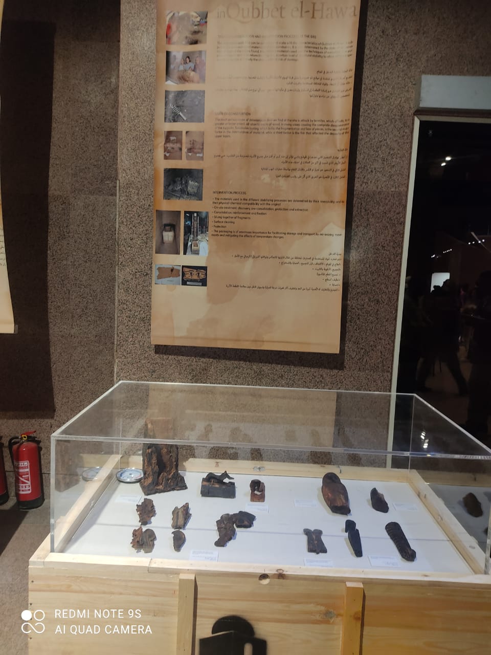 وتمثلت المعروضات في آثار لبقايا عظمية وقطع فخارية ومومياوات وتوابيت خشبية وتماثيل أوزيرية إلى جانب بعض اللوحات الحجرية وبعض أدوات الزينة.
