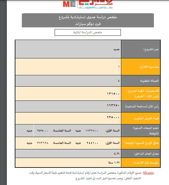 وتستعرض “فيتو” كافة التفاصيل المتعلقة لدراسة جدوى استرشادية لمشروع فرن دوكو سيارات: