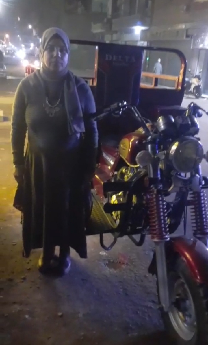 ست بـ١٠٠ راجل.. حكاية أستاذة «منى» مدرسة لغة عربية صباحا وسائقة تروسيكل ليلا|فيديو