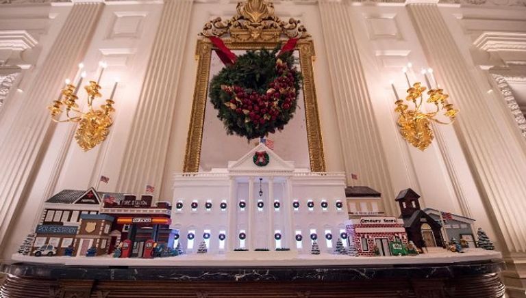 أما زينة "بيت كعك الزنجبيل" – التي تزن 350 رطلًا واستغرقت من طاهية الحلوى سوزان موريسون وأفراد فريقها عدة أسابيع لإعدادها – فرافقتها "مباني" أصغر مصنوعة أيضًا من حلوى الزنجبيل اتخذت أشكال مستشفى، ومركز إطفاء، ومركز شرطة، ومستودع، ومدرسة؛ بهدف تكريم عمال الخطوط الأولى الذين حافظوا على سير العمل في البلاد.