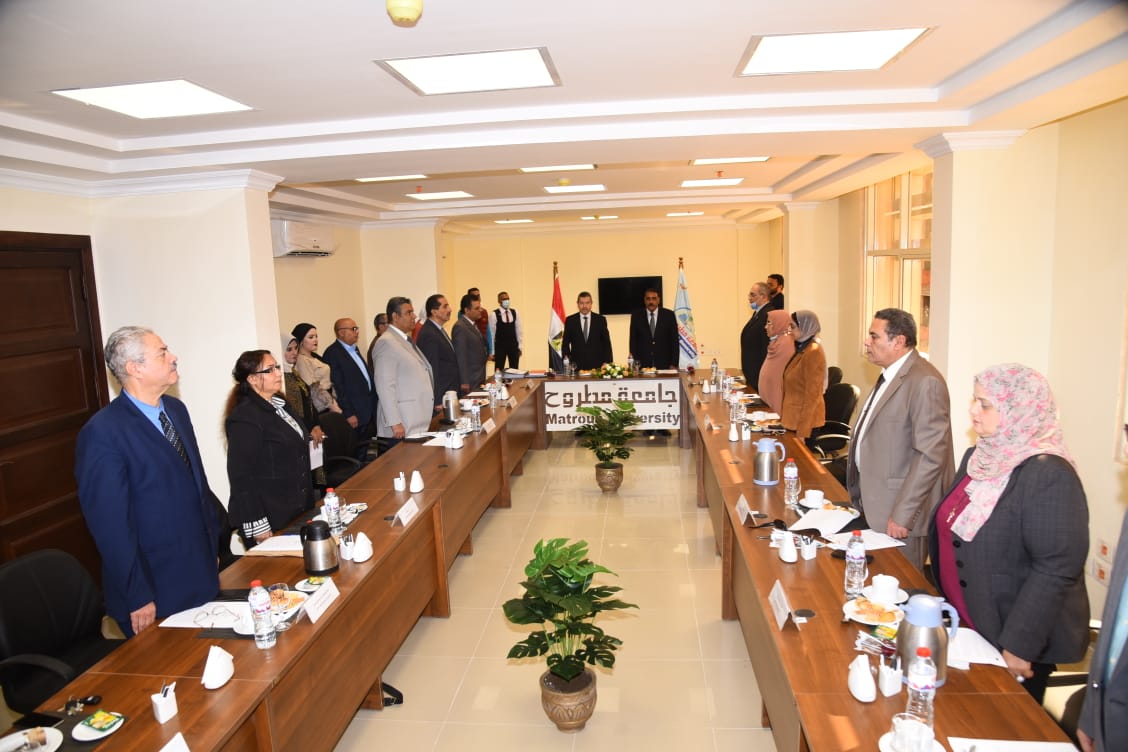 عقدت جامعة مطروح، اجتماعه الـ٤٥، اليوم الثلاثاء، لأول مرة بمقر جامعة مطروح الجديد بالكيلو ١٠ بحضور اللواء خالد شعيب محافظ مطروح ورئيس الجامعة وعمداء الكليات.
